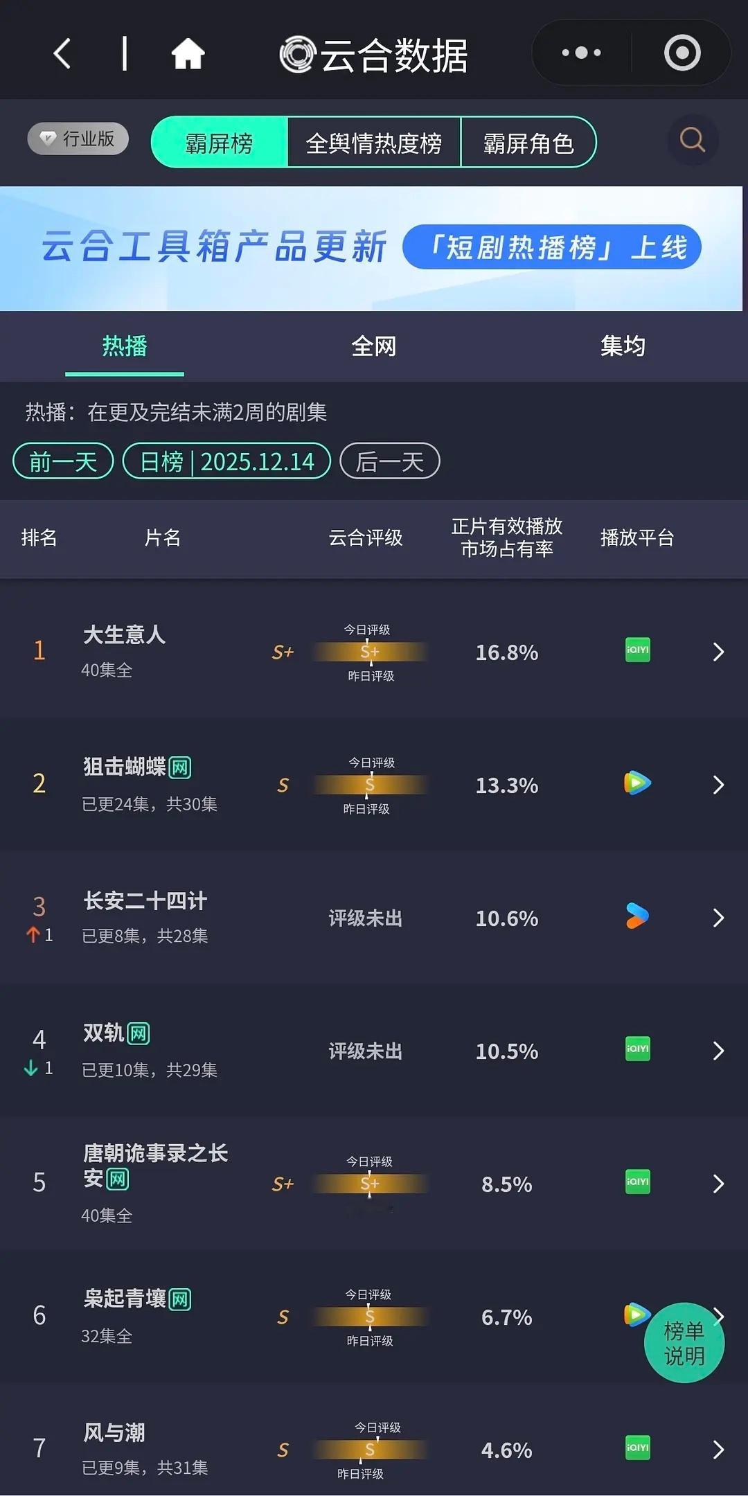 同一天同一时刻开播的两部剧的云合,有点戏剧性了