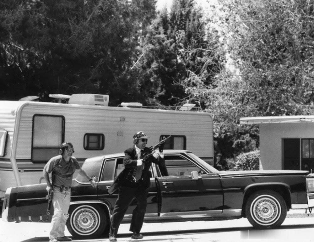 一组《盗火线》的片场照,今天是本片上映30周年本片总共在95个地点取景,没有在摄影棚内拍摄任何一段戏份,全部为实景拍摄。片中经典的枪战戏在洛杉矶市中心实景拍摄,音效也为现场收音。由于当时市中心只允许在周末拍摄,本片的这场枪战戏断断续续拍了几周才拍摄完成