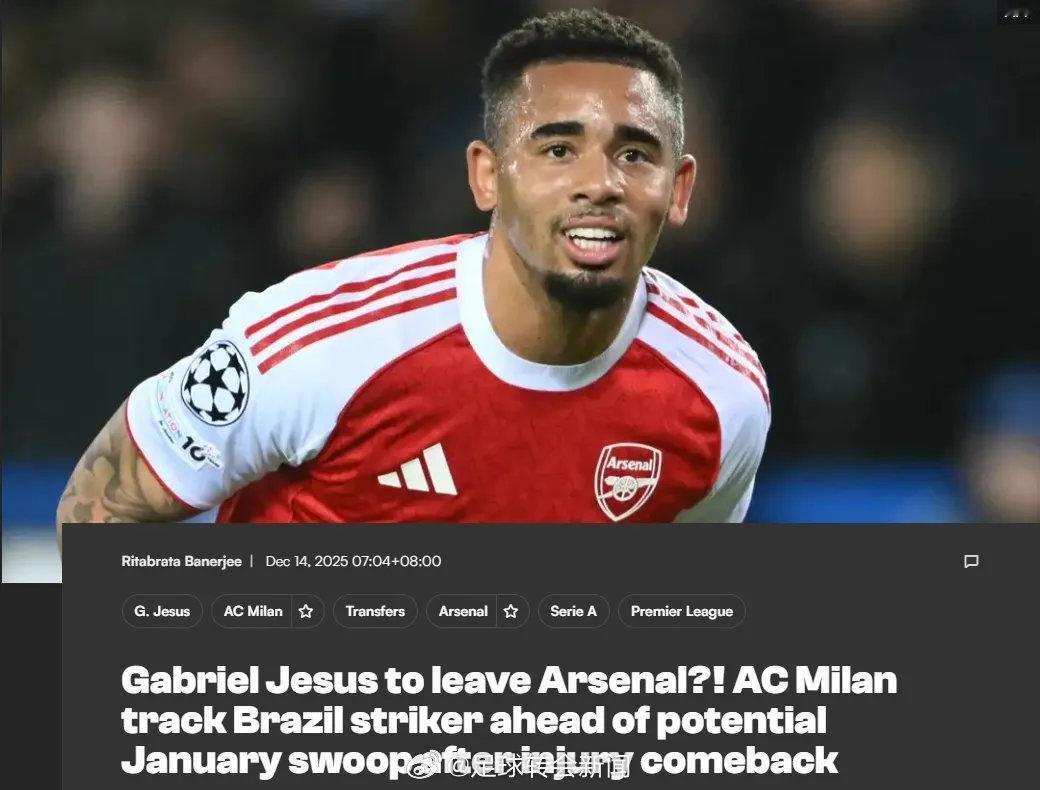 罗马体育报消息,米兰正寻求收购热苏斯,这名前锋几乎因伤缺阵了1年之久,但他最近已经完成复出,并且在对布鲁日和狼队的比赛中替补登场。报道称,米兰希望在一月份租借热苏斯,因为他们承担不起直接买下他的费用,实际上,意媒指出哪怕是租借对米兰来讲难度也很大,因为热苏斯的工资非常高。据悉,热苏斯在阿森纳的税前年薪高达1600万欧元,这远远高于米兰的承担能力,红黑军团唯一的利好是,热苏斯希望在世界杯到来之前多踢比赛。