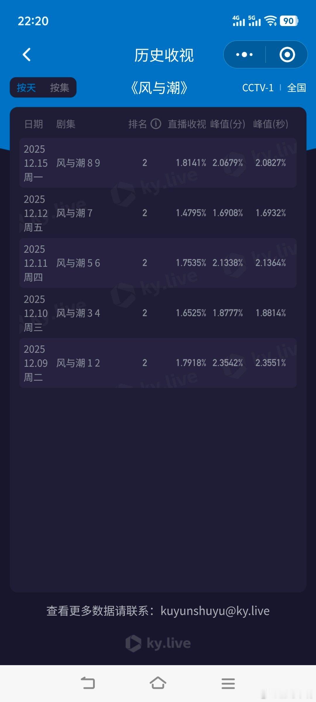 风与潮今晚收视创新高!双集平均1.8141,走势越来越好了!今晚cvb估值:1.8141×1.75=3.175