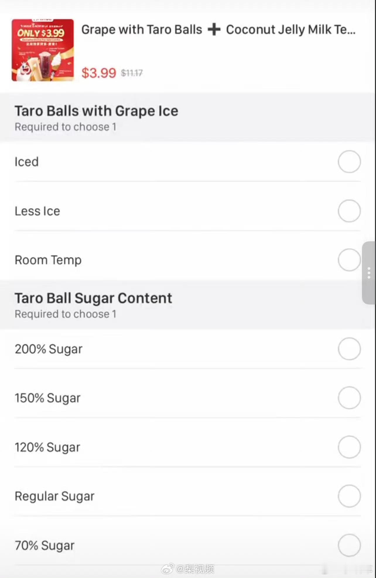 美国蜜雪冰城价格竟然还有“120%糖度、150%糖度、200%糖度可选。”对我们而言全糖已经非常甜了,难道他们就这么爱吃糖吗?