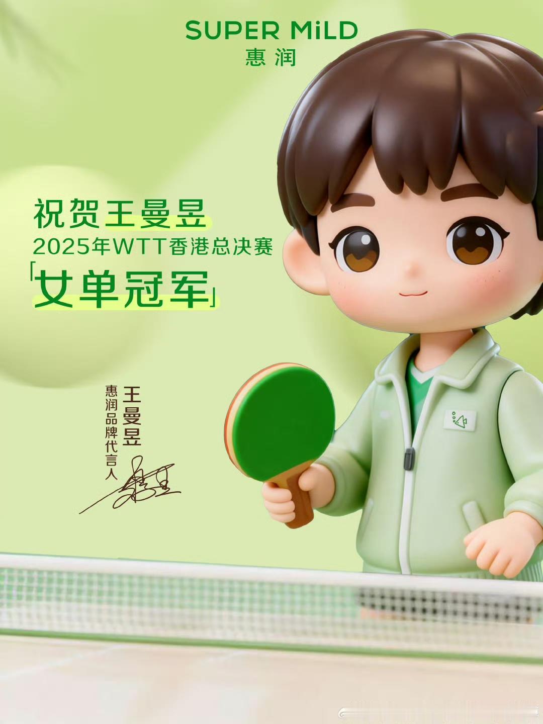 王曼昱代言洗护品牌送上WTT年终总决赛女单冠军庆祝海报!因为最近三个月王曼昱背靠背已经连续拿了6个冠军。代言品牌也是不停出海报,现在都不知道什么海报够吸引人了!于是这次惠润直接设计了一个曼昱卡通人偶,主打可爱版曼昱拿着球拍! 品牌大大们还是非常用心了!主要是曼昱拿冠军频率太高了!