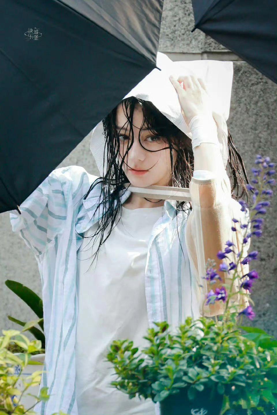 陈紫函浇花,除了粉色的花,就是白晃晃的……