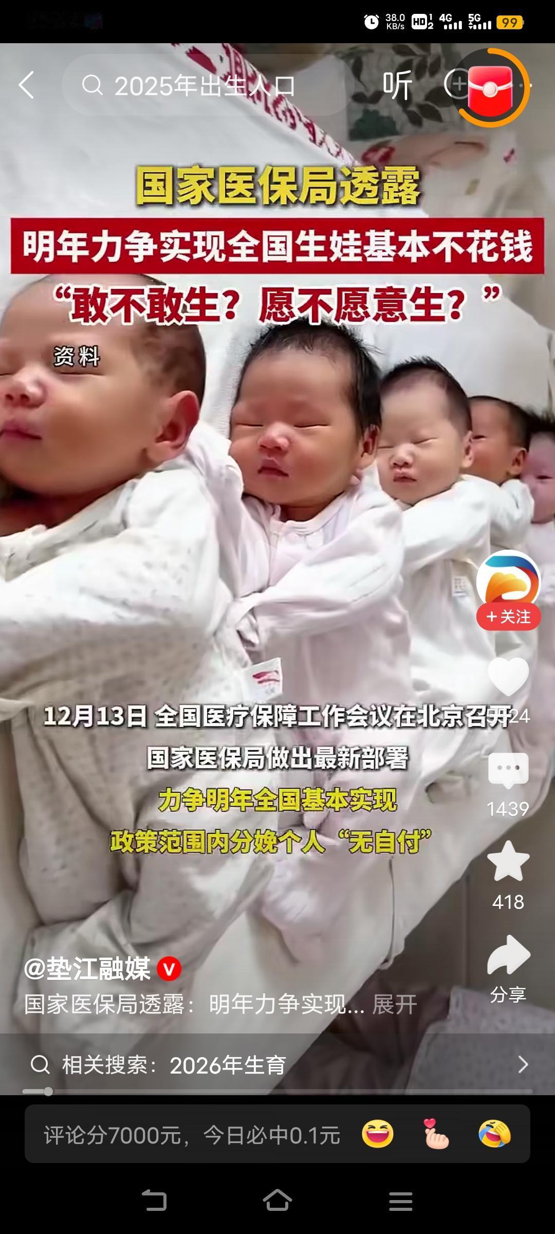 【#2026年全国生娃基本不花钱#】#生育成本社会共担来了#12月13日,国家