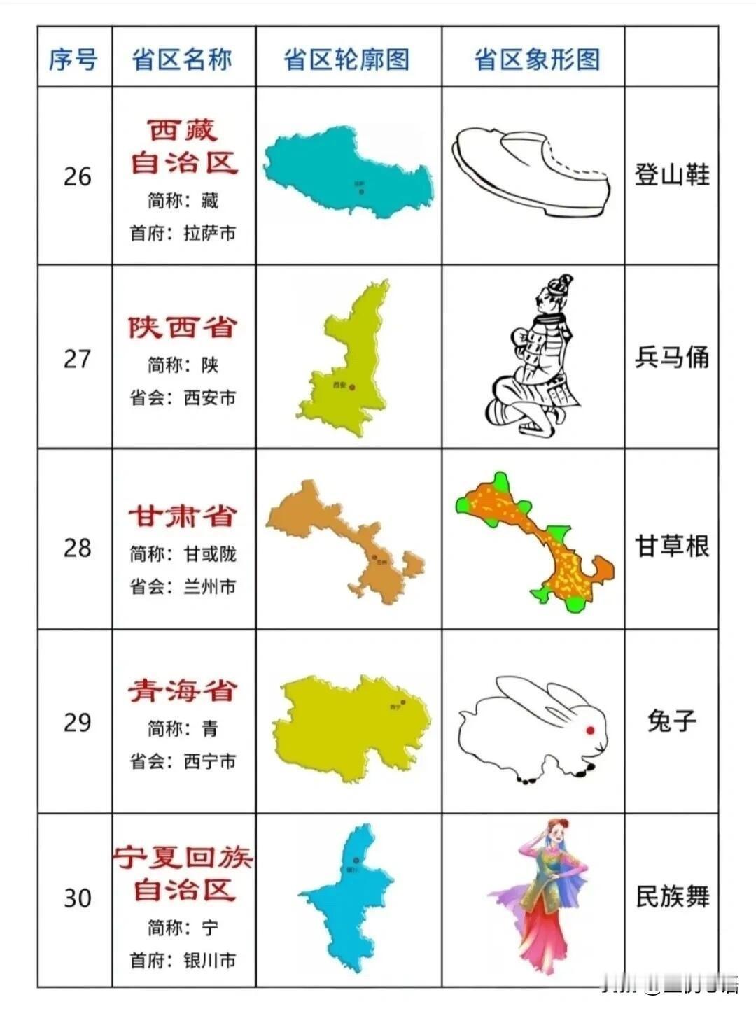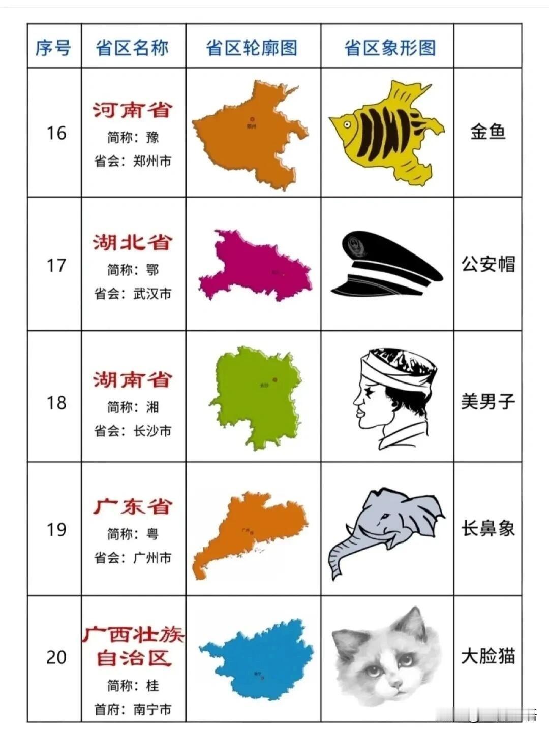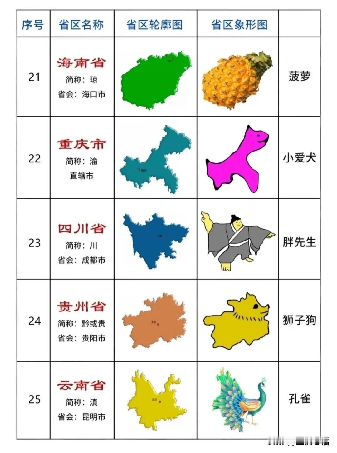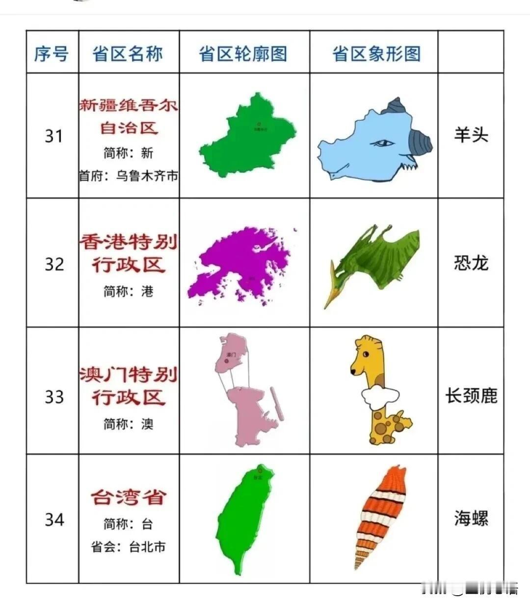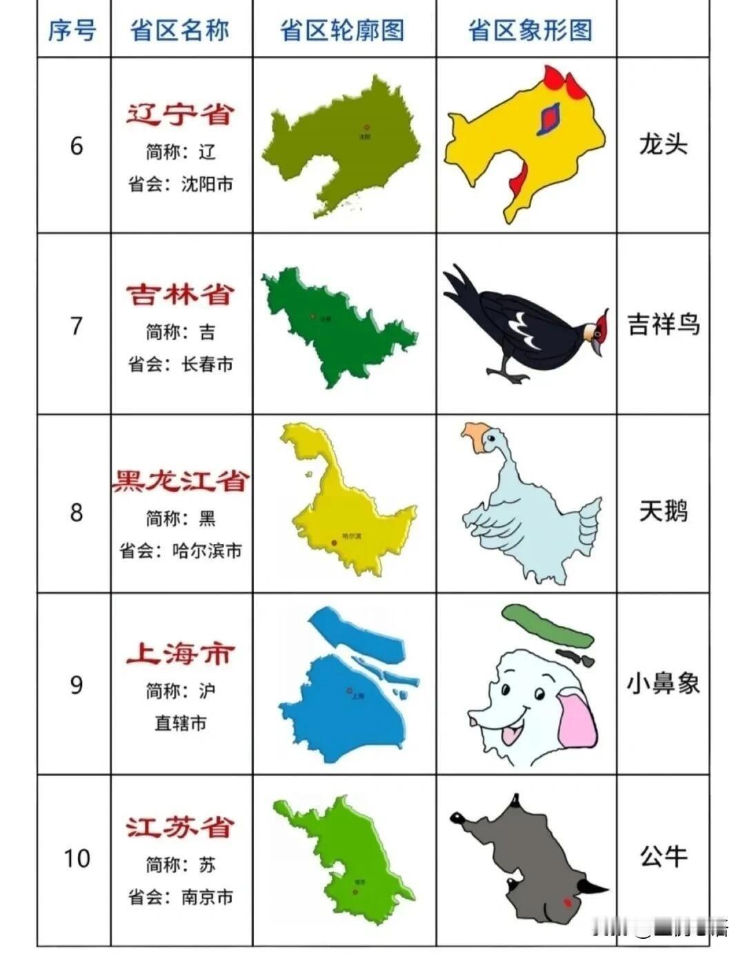 各省地图象形记忆法! 记轮廓再也不头疼 各省地图真的难哭人, 直到刷到象形动物版。 原来每个省区都能对应小动物, 形象又好记: 黑龙江像天鹅、云南像孔雀、青海像兔子, 陕西像兵马俑、广东像大象鼻子, 一看就忘不掉。 不用死记硬背,靠联想就能轻松拿捏, 比死磕课本高效多了,还特别有意思。 不管是学生备考,还是日常涨知识都够用, 收藏起来慢慢记,再也不怕认不出各省轮廓啦~ 中国地理分区图
