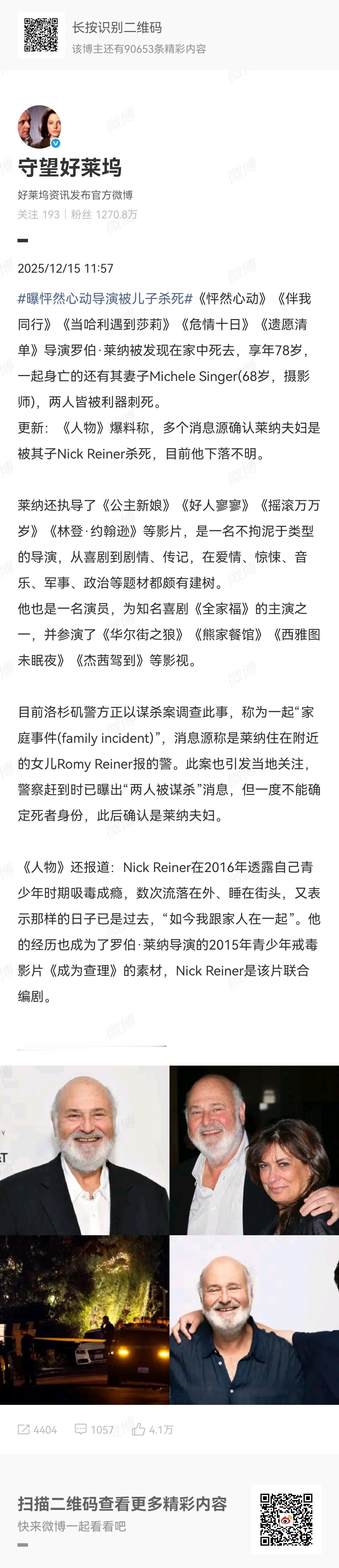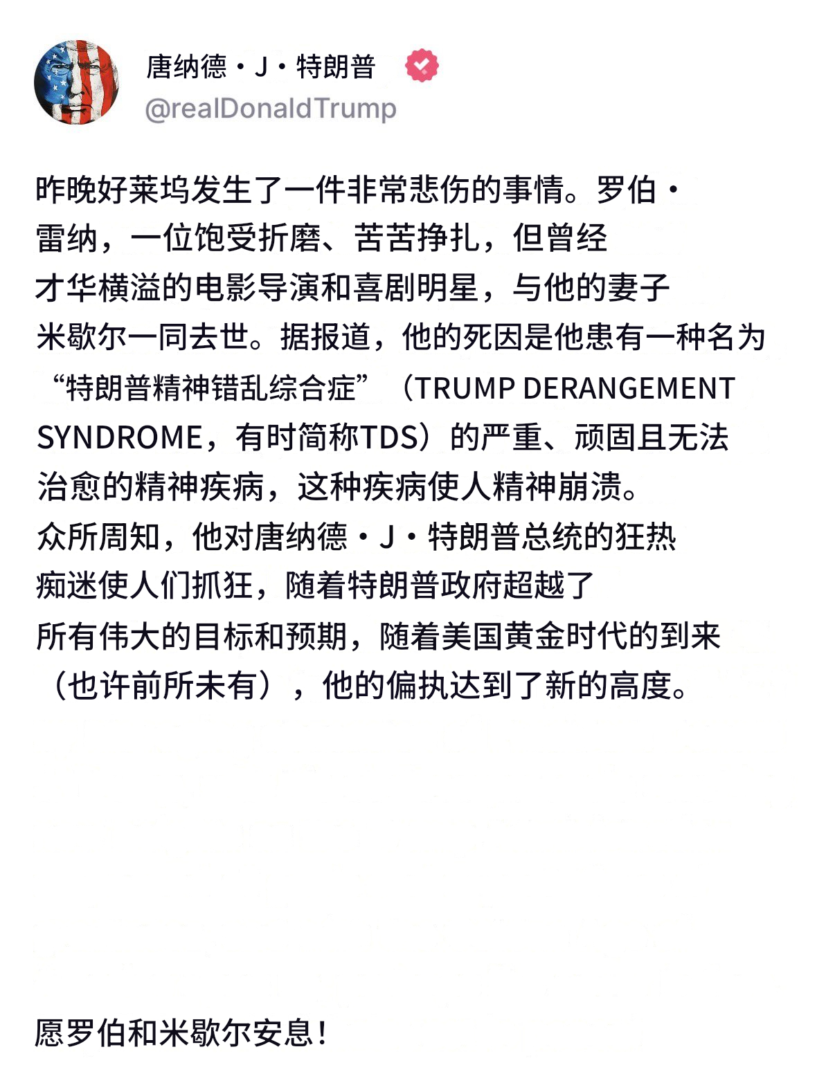 特朗普连死人都不放过,称罗伯·莱纳夫妇患有“特朗普精神错乱综合征”热点观点曝怦然心动导演被儿子杀死