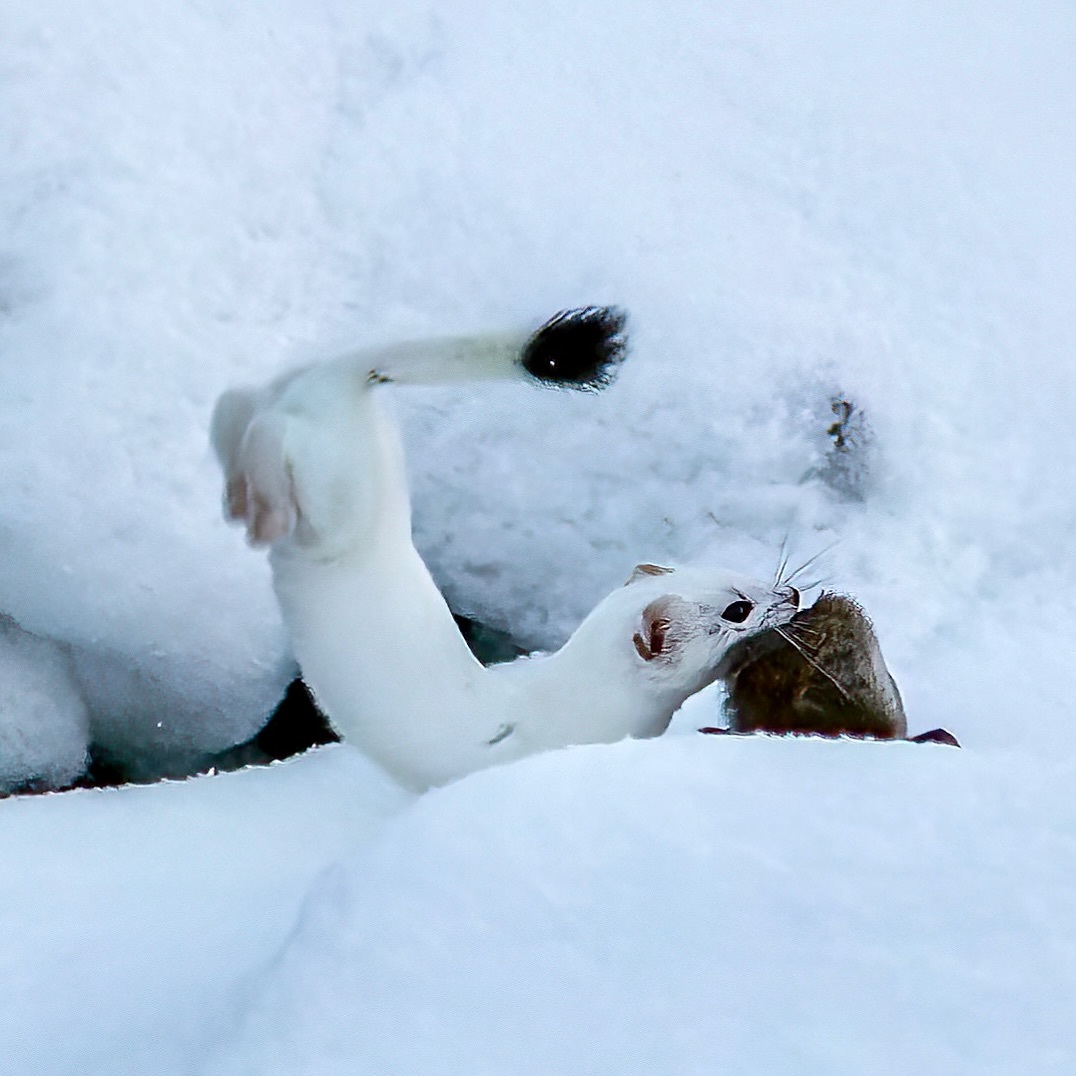 小小的身材,大大的能量!白鼬可以说是自然界的小个子猎手中,非常能打的存在了【ins:hirokirin_photography】