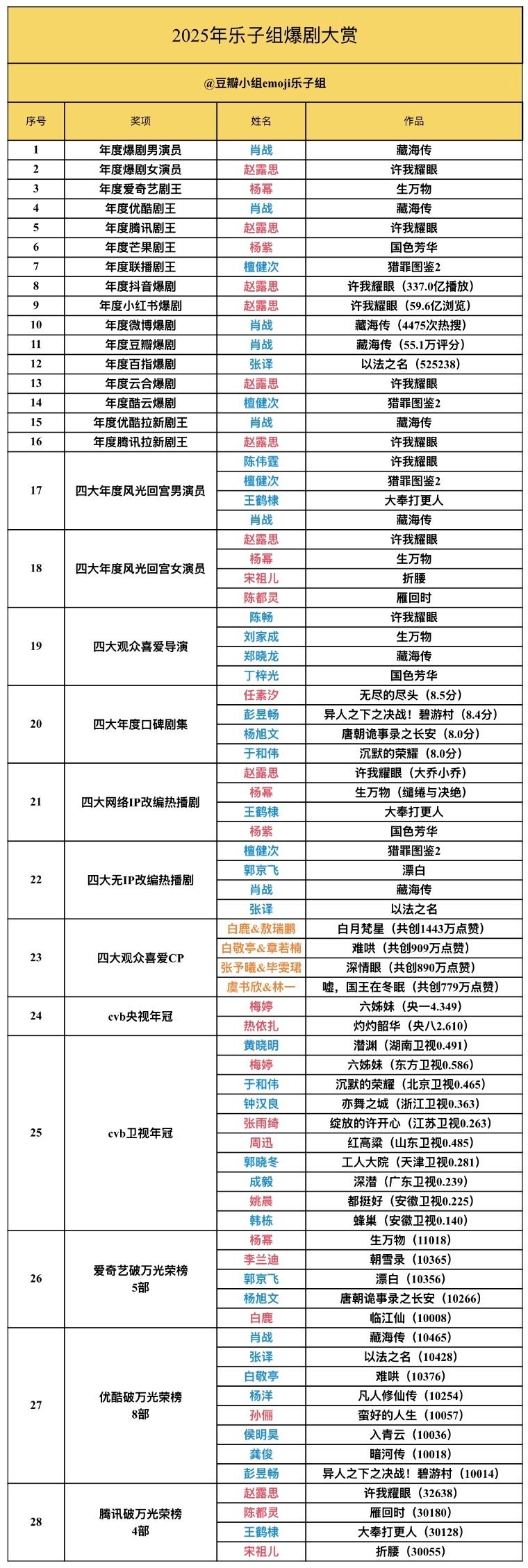 2025年爆剧大赏:肖战年度爆剧男演员,赵露思年度爆剧女演员
