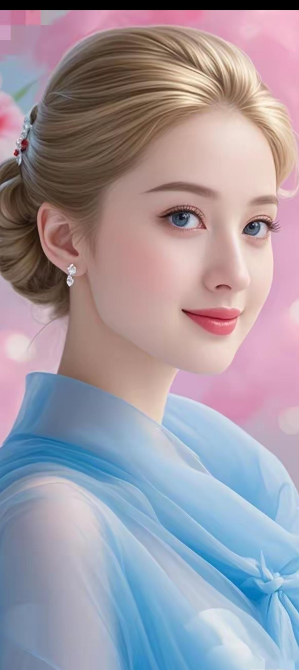 粉衣美人倚栏杆,微风拂面笑语闲。