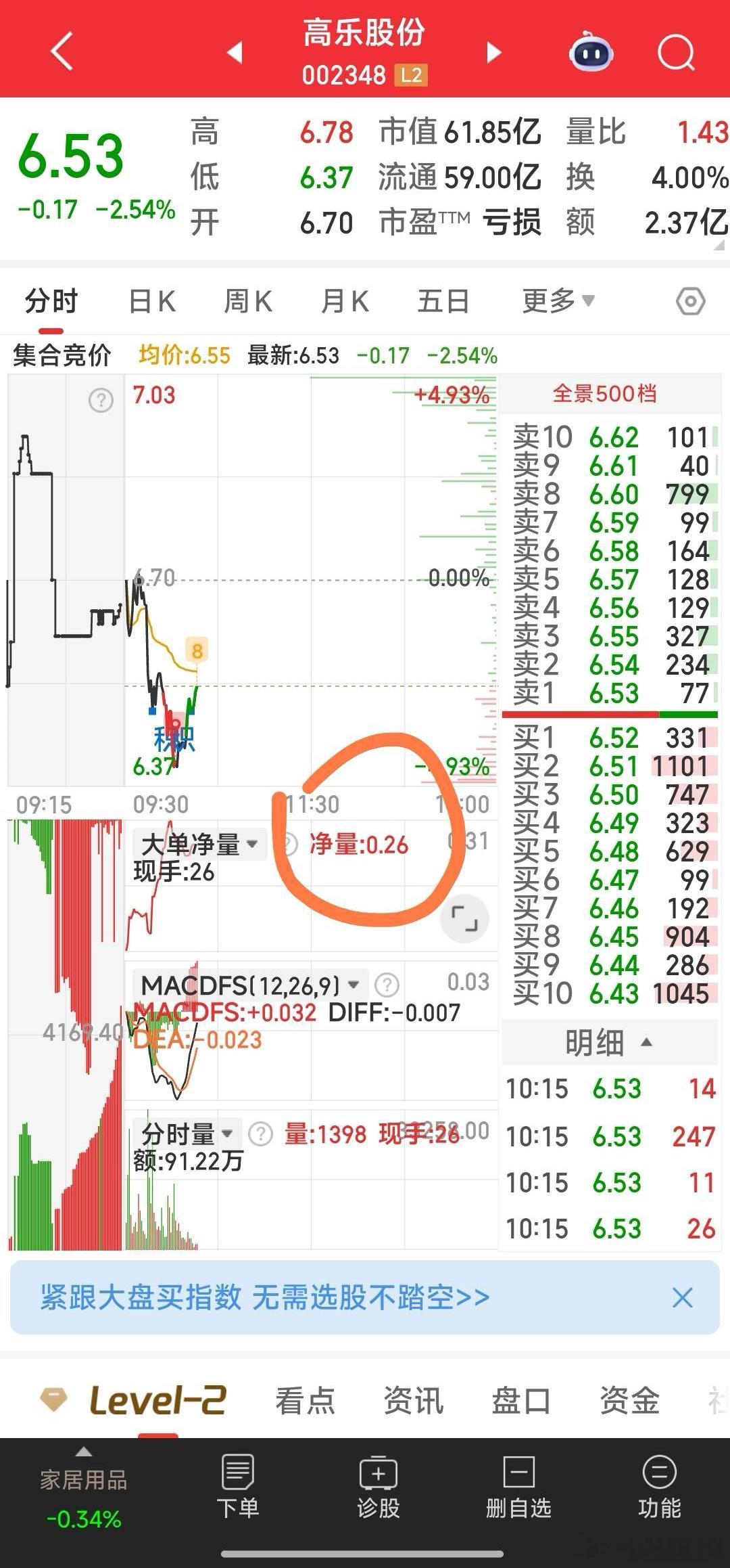 高乐股份,今天主力净大单流入,回弹较快,依然有牛妖之气,值得跟踪