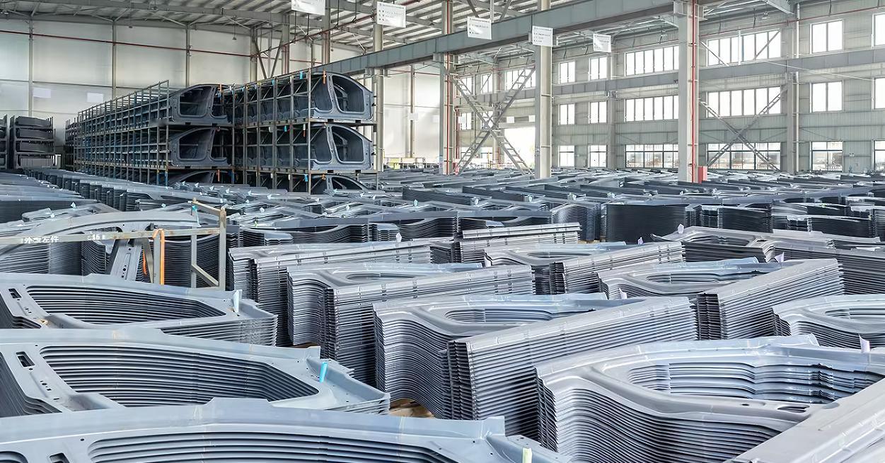热成型钢的工艺简介一般热冲压零件的典型生产工艺核心工序包括:加热(奥氏体化)——淬火成型——激光切割,具体的:1.下料准备: 根据零件尺寸裁剪板料,并进行清理去毛刺等处理。2.高温加热: 将板料送入加热炉,加热至约880~950℃,使钢板完全奥氏体化。此阶段板料呈红热状态,软化具高延展性。3.快速转移: 将加热后的板料迅速从炉内转移到冲压压力机,通常要求几秒钟内完成以防板料过度冷却。4.冲压淬火: 在专用压力机上完成闭合冲压,将板料压塑成型的同时,模具内的冷却水道迅速带走热量,使板料在模具中淬火。钢材发生相变,从高温的奥氏体转变为硬而脆的马氏体组织。5.脱模与后处理: 取出已成型且硬化的零件。根据需要进行修边、冲孔(若未提前完成)以及去除氧化皮(若使用裸板材则可能需要喷丸去氧化皮)。部分特殊工艺零件,针对汽车碰撞安全不通区域材料的规格,性能需求不同,有:激光焊接,材料需要在激光拼焊厂拼焊成二次板料,再运送到热冲压厂进行加热淬火成型,比较典型的有热成型钢激光焊接门环。变厚度轧制板,通过柔性轧制工艺生产的金属板,即在钢板轧制过程中,通过计算机实时控制和调整轧辊的间距,以获取沿轧制方向上按预先定制的厚度连续变化的板材。奔驰宝马大众大量使用该工艺。分区强化,板料原料为一个等厚等强度料片,通过特殊工艺(模内分区加热、炉内分区加热)实现不同区域、不同强度的功能。同一个零件上分成了几个区:硬区和软区,硬区抗拉强度仍为1300MPa以上;软区抗拉强度则为500MPa-800MPa。典型的例子有本田雅阁(北美版)。补丁板;通常是在热冲压零件需个别加强的区域,预先在坯料上焊接好另一块或数块热冲压材料,然后一起加热并在同一套模具内一起淬火成型,从而实现不同区域的不同料厚和结构强度。该工艺可以节省冲压模具,综合成本相对较低,是广泛采用的工艺。比如岚图FREE车型。通过上述流程,热冲压工艺可将钢材抗拉强度从约500–600MPa大幅提高至约1500MPa。也就是说,经过热成型淬火后的零件强度可达到原来的2.5倍左右,大大提升了零件的强度性能。与此同时,由于淬火形成了马氏体相,零件的硬度显著提高,形状在冷却后基本固定,几乎没有回弹变形问题。 热成型用钢在加热和冷却过程中会经历显著的金相组织变化,这是其强度大幅提升的根本原因。在初始室温状态,下料钢板通常为铁素体+珠光体等软组织。当将其加热到约900℃并保温后,钢板全部转变为奥氏体(高温下的均匀固溶体)。奥氏体状态下材料非常软且易塑形。随后的模内淬火冷却是关键一步:板料在模具中以几十℃每秒的速度急冷,奥氏体来不及向平衡相转变而发生马氏体相变,形成马氏体组织。马氏体是一种过饱和固溶体,具有高度畸变的晶格结构,因而硬度和强度极高。实验表明,22MnB5钢只要冷却速度≥约10℃/s即可获得以马氏体为主的组织,冷却越快马氏体比例越高。实际热冲压模具冷却速度通常远高于此,能使绝大部分奥氏体转变为马氏体,从而赋予零件超高的强度。零件不同区域冷却速度不一致时,可能产生组织差异。例如厚截面或离水道远的区域可能形成一部分贝氏体或铁素体,导致该处硬度低于设计要求(“软点”)。软点会降低零件整体强度,需要通过优化水道布局或延长保压时间来解决。大v聊车