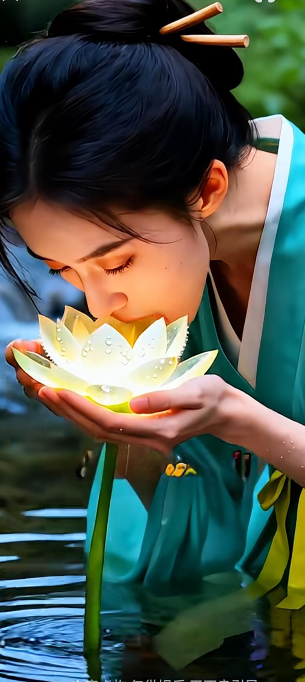 粉衣美人倚栏杆,微风拂面笑语闲。