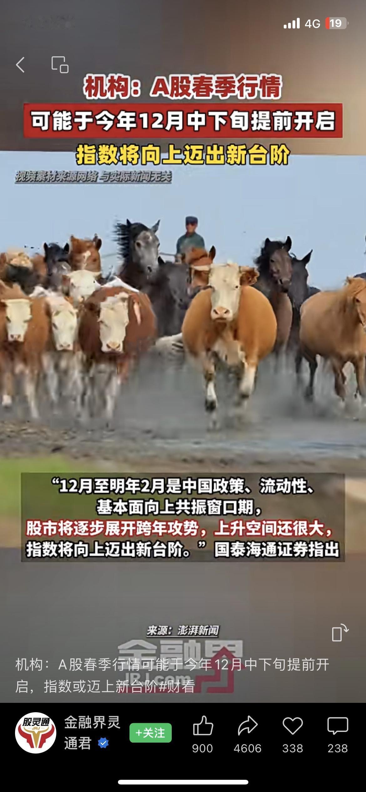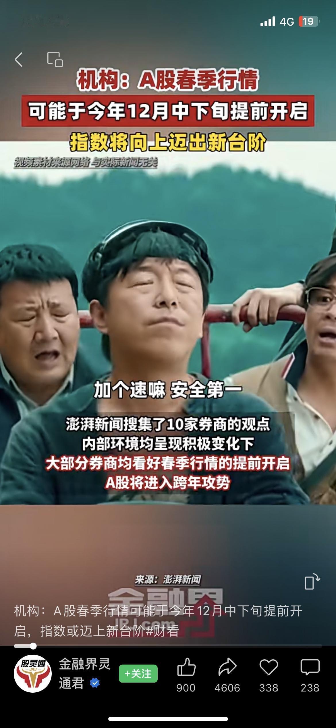 赶紧看!A股春季行情或提前开,咱理财的别踩坑 咱过日子的要是关注理财,可得留心点!权威渠道明确说,A股春季行情可能12月中下旬就开启,10家券商都看好跨年攻势。新手别盲目跟风加仓,其实很简单,先看自己的风险承受能力,选低位优质板块布局更稳妥,别浪费了行情机会。指数大概率要迈新台阶,咱普通人理财还是得稳字当头。 你打算趁这波行情入手吗?评论区说说看法~A股行情