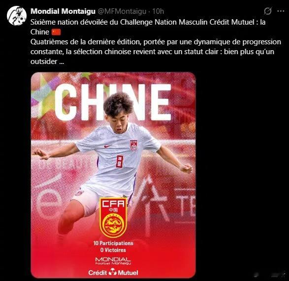 明年蒙太古杯(2010年龄段),赛事官方发布中国国少参赛的海报。不知道届时处于西班牙🇪🇸联赛冲刺阶段的中国足球小将 凯凯、林峒、东宸是否有机会投入战斗。