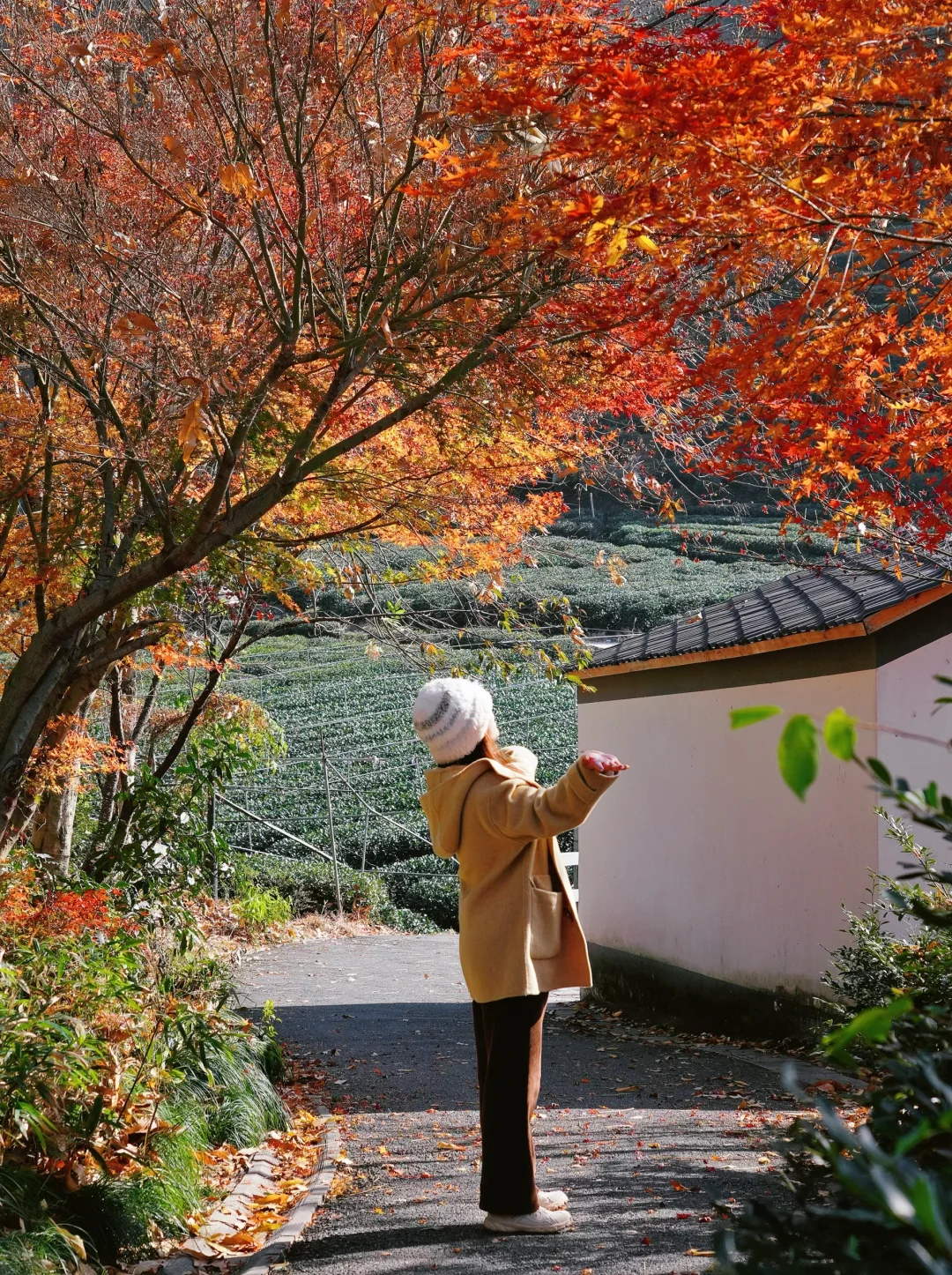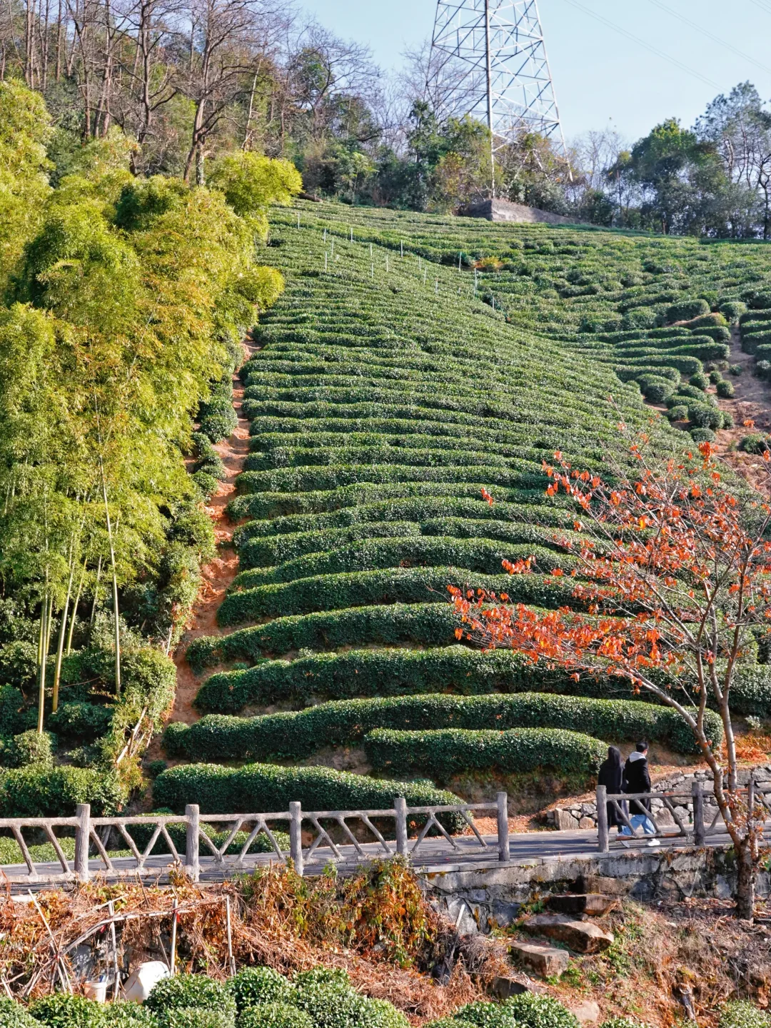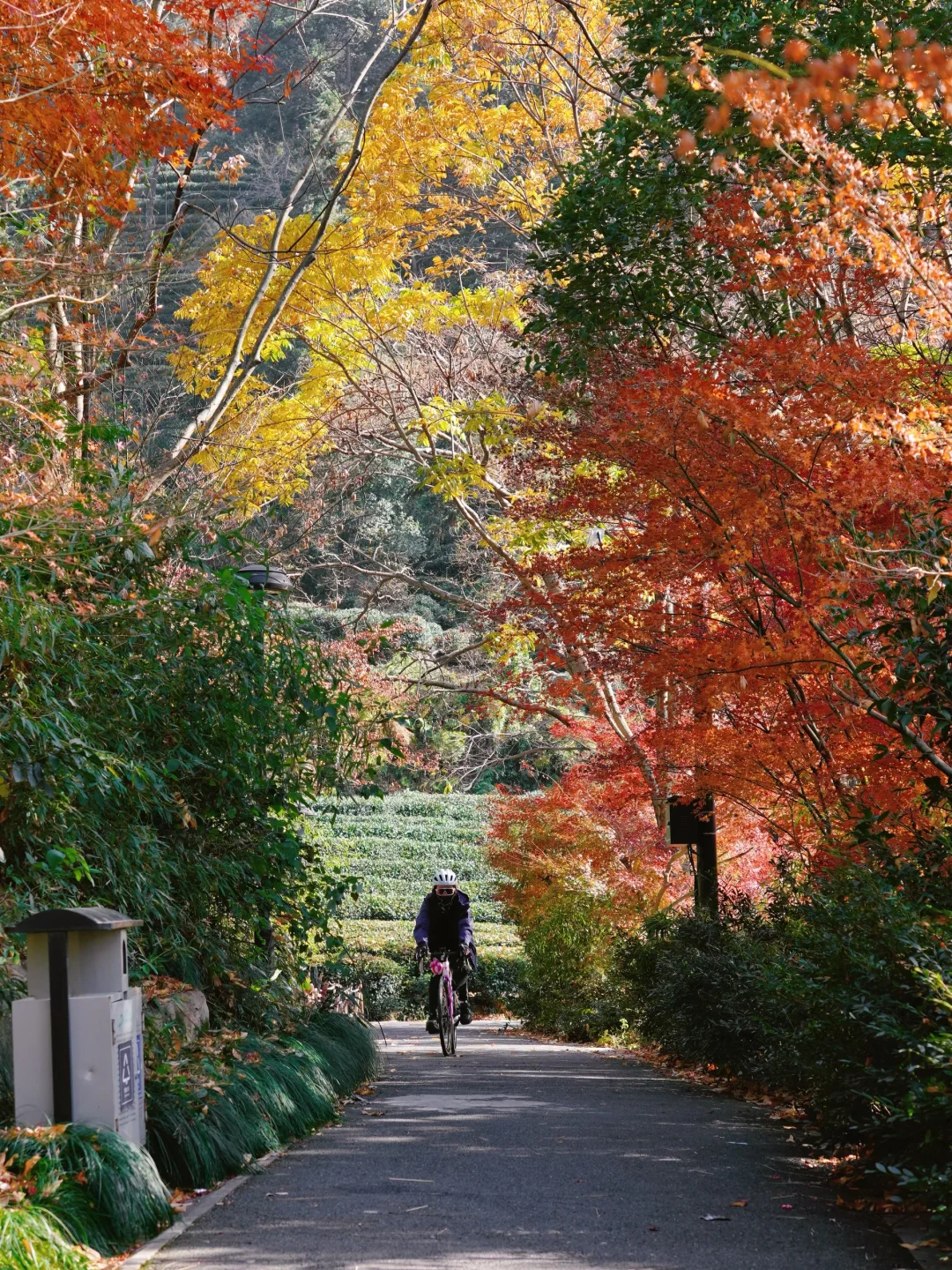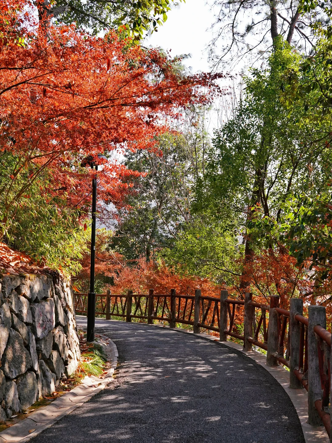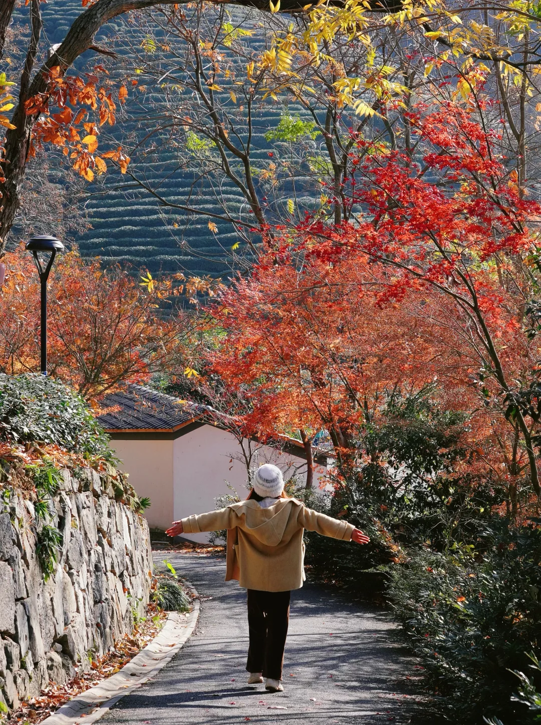 全程平路古道,茶山环绕,枫叶很红,风景治愈。