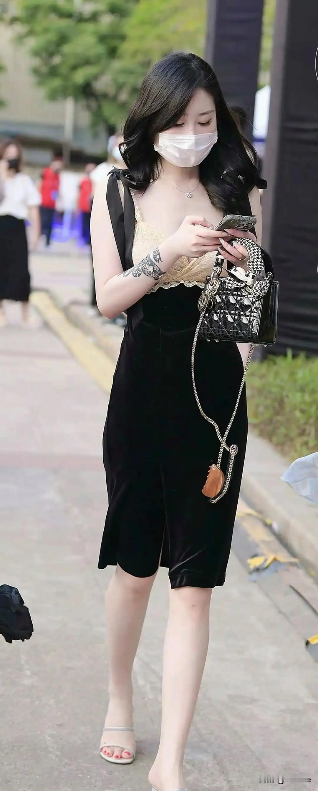 时尚穿搭指南:黑色连衣裙搭配链条包,优雅出街!👗👜💃