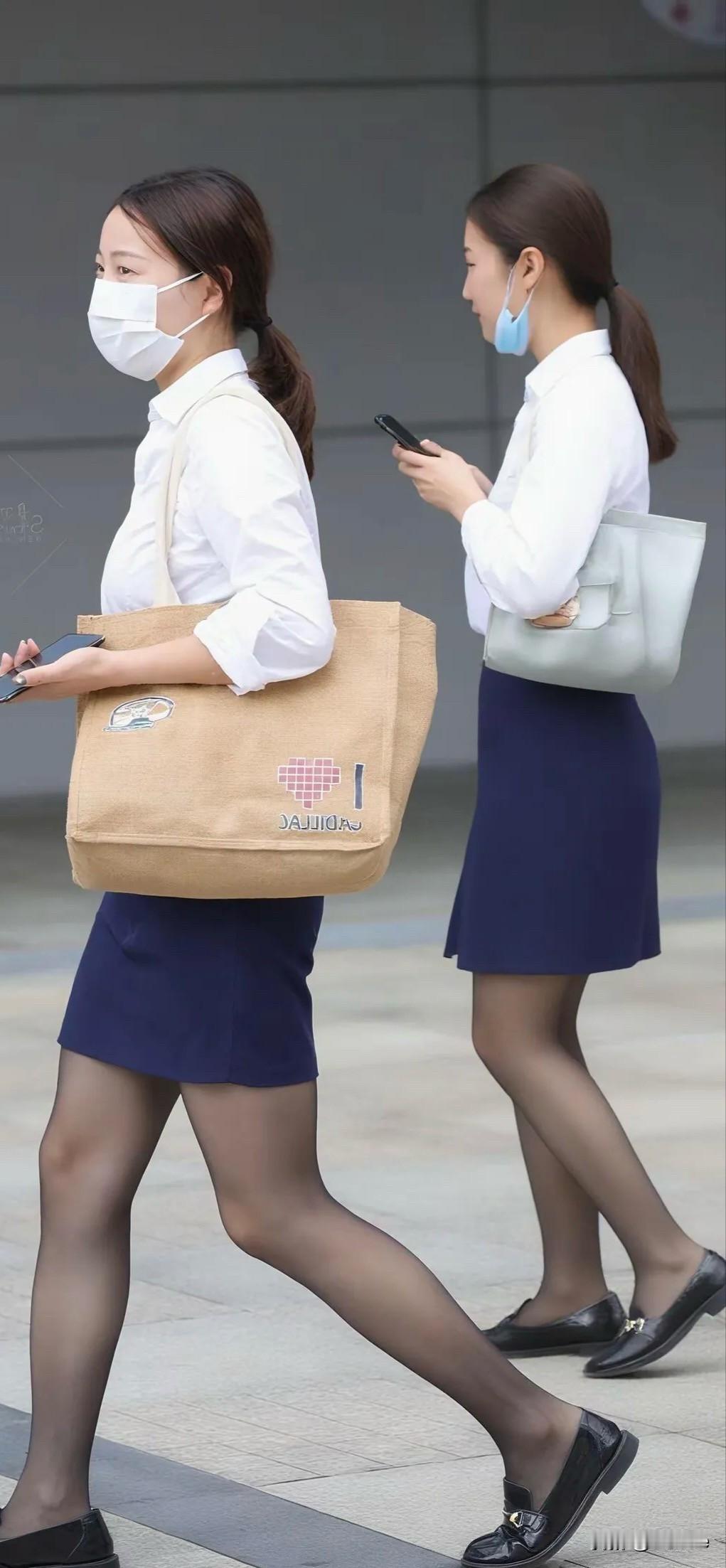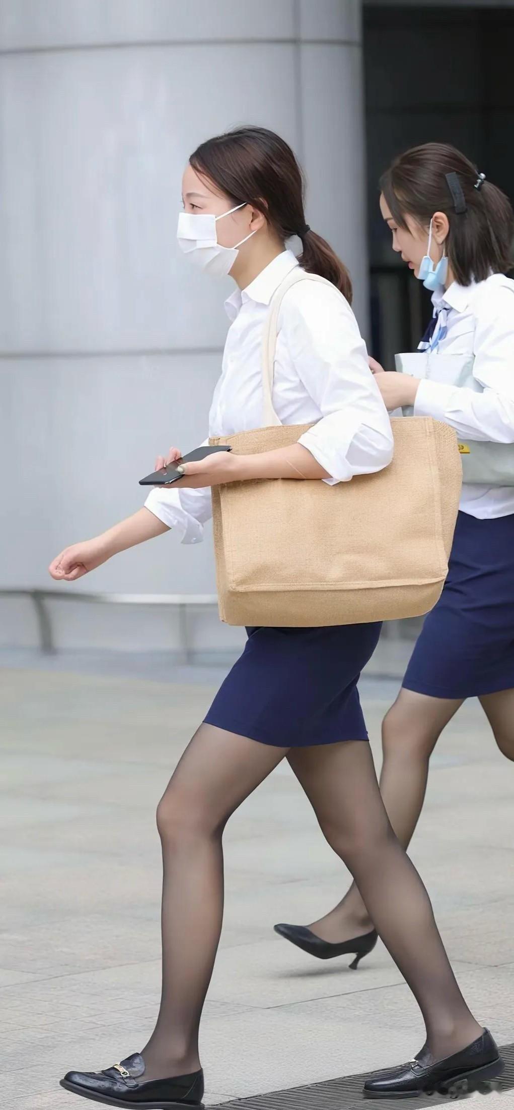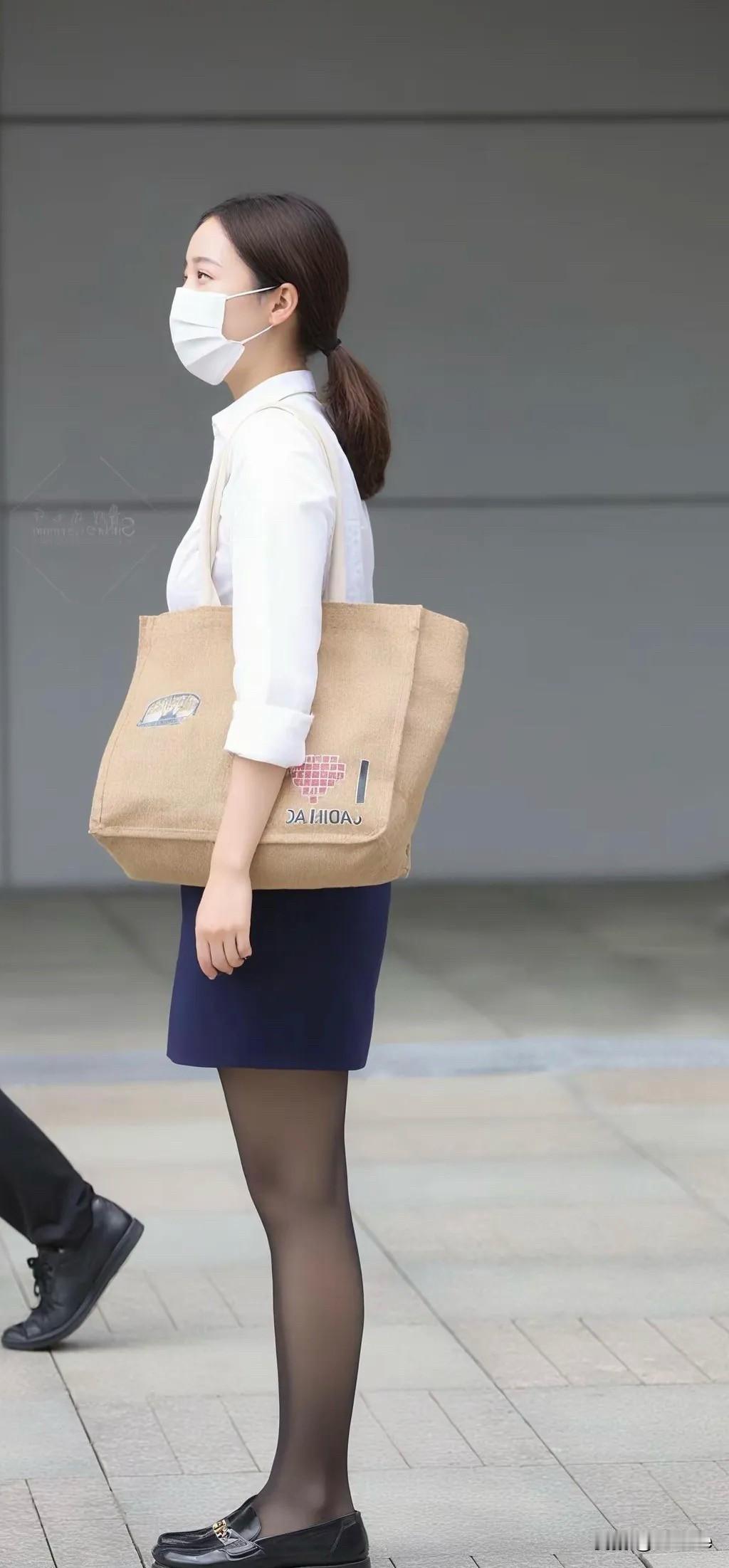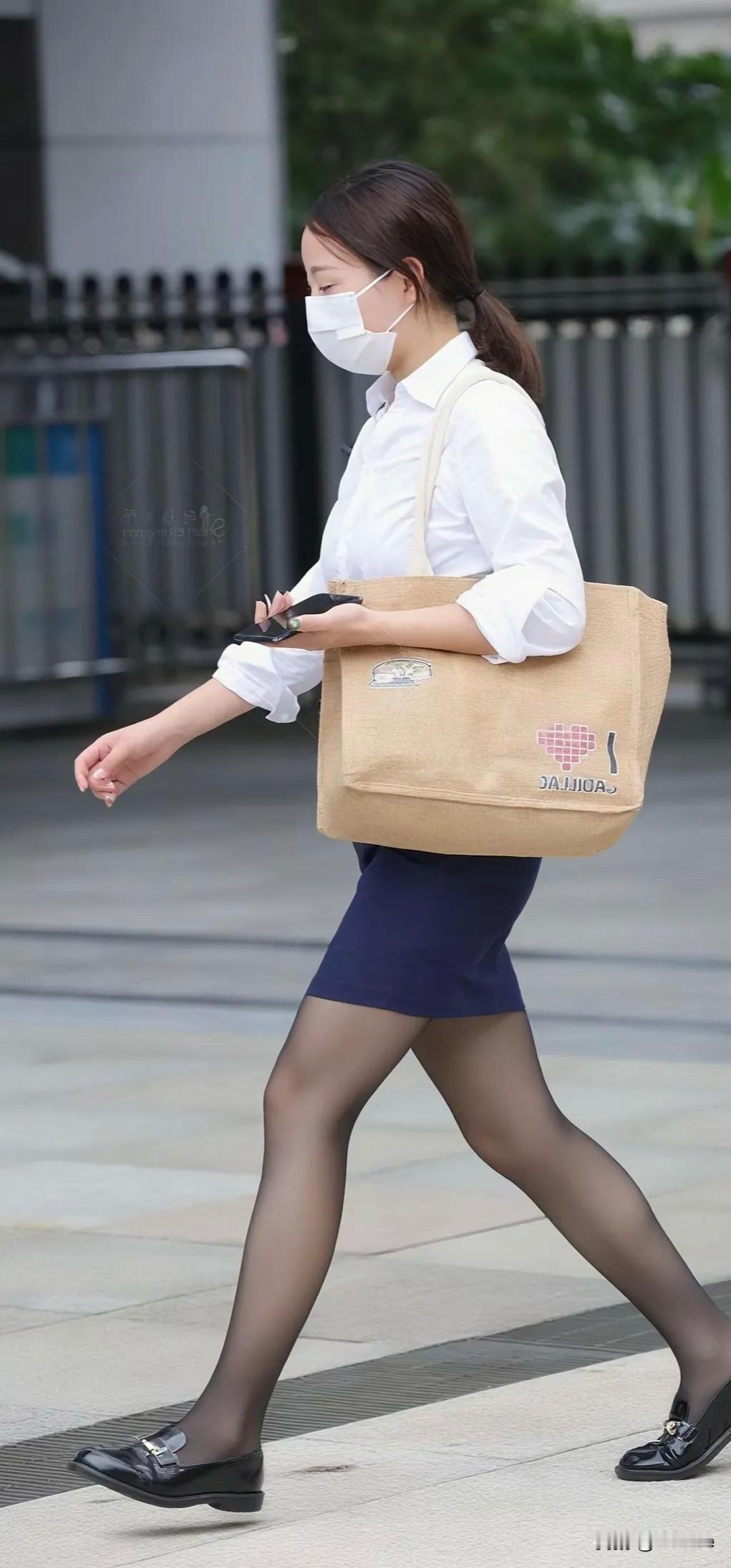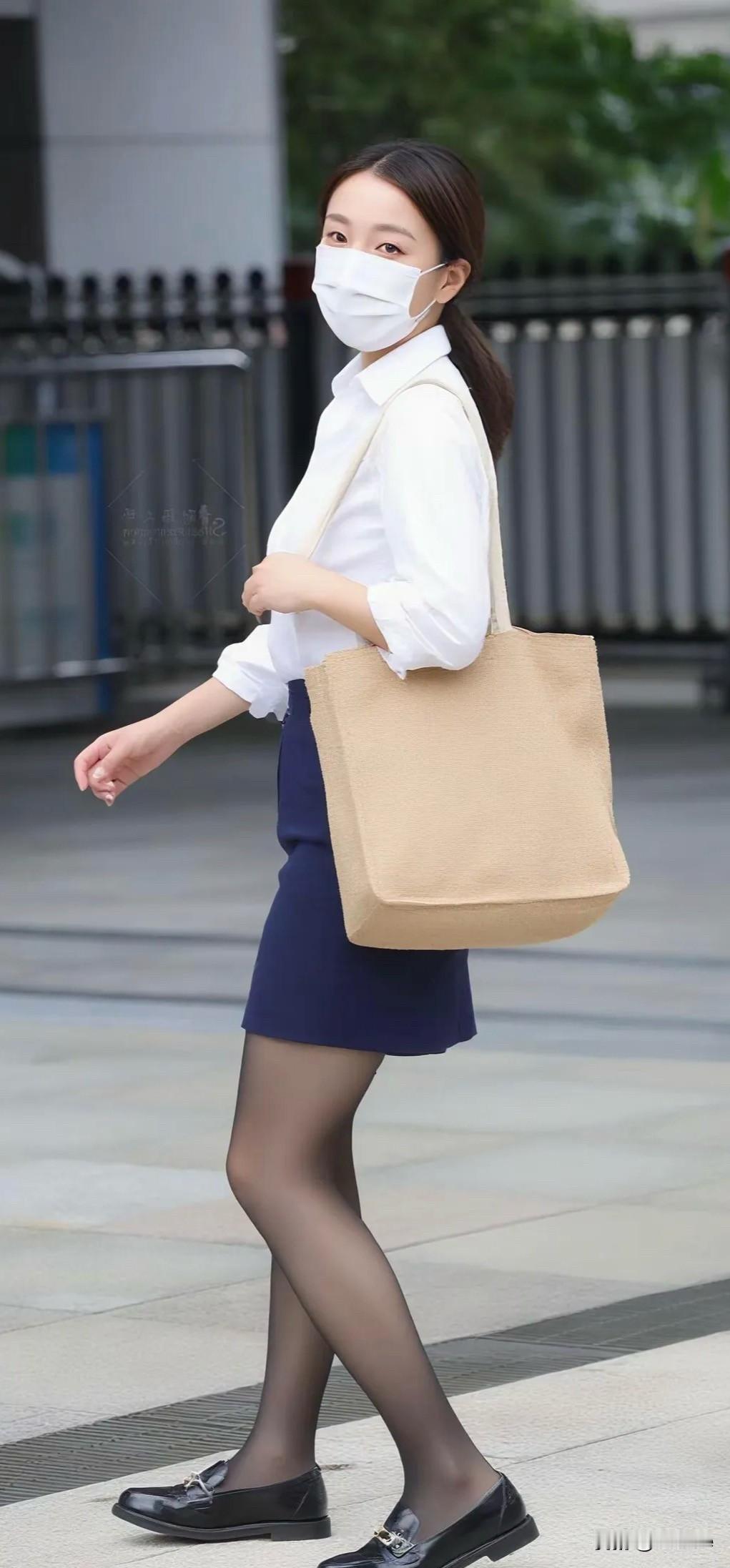 优雅职场穿搭,白色衬衫+蓝色短裙,搭配米色大包,时尚又实用!