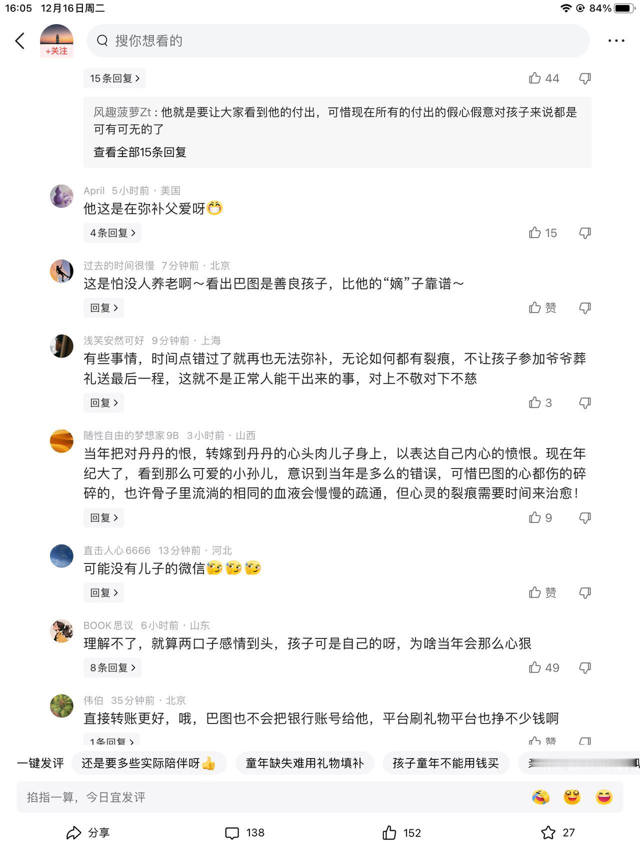 英达最近天天蹲巴图直播间,嘉年华一个接一个的刷,有人调侃,这是没有儿子微信啊! 单场就刷掉十几万。别说,还真有可能。在巴图心里,这个爹可有可无。你说孩子小的时候不管不顾,长大了,抱孙子了哎有可能是想抱抱孙子,听听孩子叫爷爷。 当年离婚把巴图留给宋丹丹,转头儿娶了新媳妇,生了嫡子英如嫡。这名字 起的,向谁宣战似的。古人云,越缺什么就越炫耀什么。如嫡可惜不是嫡也不如嫡。 冰壶项目,小儿子也没什么傲人的项目。难道英达老了老了,需要儿子给撑门面了。也说不定,人老了,老登思维就来了。不是自己多牛多牛的时候,是需要儿子给撑场子了。 确实人家巴图有成绩,直播带货卖的真不错,从选品,到上架,人家两口子也干,团队也参与。卖的真的不错。钱真的有了。一儿一女,宋丹丹当着奶奶,别提多开心了。