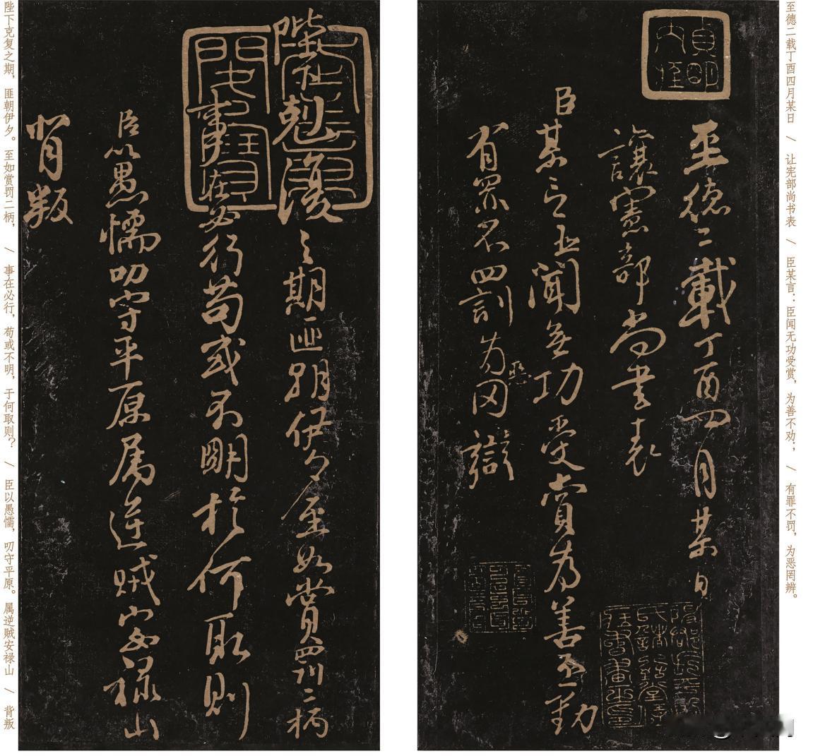 颜真卿最见水平的三件书法,看似胡涂乱写,实则高妙入神,外行:鬼画符! 有不少人只愿意欣赏那些横平竖直、美观端庄的字,而忽视了书法美的多样性。就比如说,颜真卿、金农、郑板桥等人的书法就常被骂“丑”,但如果仔细看看每一个用笔细节,就会发现高妙入神,特别是颜真卿。 我们常说颜真卿是“楷不如行,行不如草,草不如稿”,他的那些手稿作品最见水平,“颜氏三稿”和“颜氏三表”被米芾称为“世之颜行第一帖”。“三表”一直以来名气都低于“三稿”,实际上不论是可学性还是字数,它都更胜一筹。 “三表”指的是《谢赠祖官表》《谢兼御史大夫表》《让宪部尚书表》,写于唐至德二年(757年),总计2000余字。由于是草稿,书写时没有任何的刻意安排,批改涂抹痕迹保留,所以很多外行称之为“鬼画符”。“三表帖”原作已失,有初拓本传世。 笔法刚劲藏韧,中侧相济,区别于《祭侄文稿》的悲愤狂放,起笔切入后迅转中锋,笔画如拉满的弓,力聚而不泄。 行笔提按反差精准,竖画重按凝实,轻提处枯笔见骨,避免硬挺失柔。转折处方折藏圆,转角先顿笔如立桩,再缓转藏筋,清代何绍基评:“鲁公此帖笔锋如谏言,刚而不激,劲而有节。” 结字遵循稳中有势,以字载意,贴合奏疏的严谨特质。字形以方正为基却不僵板,左右结构的字,往往左部收束如握拳,右部舒展似发声,疏密对比暗合心境;而上下结构的字,上部紧凑如屏息,下部收锋如藏刃,避免张扬却暗藏锋芒。 与《争座位帖》的欹侧狂放不同,此帖结字更重“主次分明”,笔画穿插有序,通过大小、高低、轻重、收放、疾徐的变化来彰显层次,显示出动感。 章法打破行草的随意感,三篇作品自成章法,首帖字距疏朗、行距匀整,继而字距加密、行距压缩,笔画交错,虽为拓本,但仍可感受到墨色浓重,行距渐变、字态趋稳,章法由密转疏,条陈清晰,笔墨完全服务于内容。 宋代朱长文《续书断》称“此帖书如其疏,刚直不阿,为书家‘言为心声’之证”。当代碑帖学者傅申指出“《三表帖》的笔法抗辩性,是颜体行草区别于其他书家的核心”。颜真卿以《三表帖》全篇篆籀笔法,中锋用笔稳健而灵活,结字因字赋形而又暗合规矩。 如果我们能将此作临摹通透,不仅可以提升中锋运用的水准,而且还将继承“晋唐古意”,做到法度、气韵的协调。 而今,我们将此作进行了博物馆级的超高清1:1复制,并添加释文一一对应,便于您临摹和欣赏。如果您感兴趣,请点击下方链接一观!