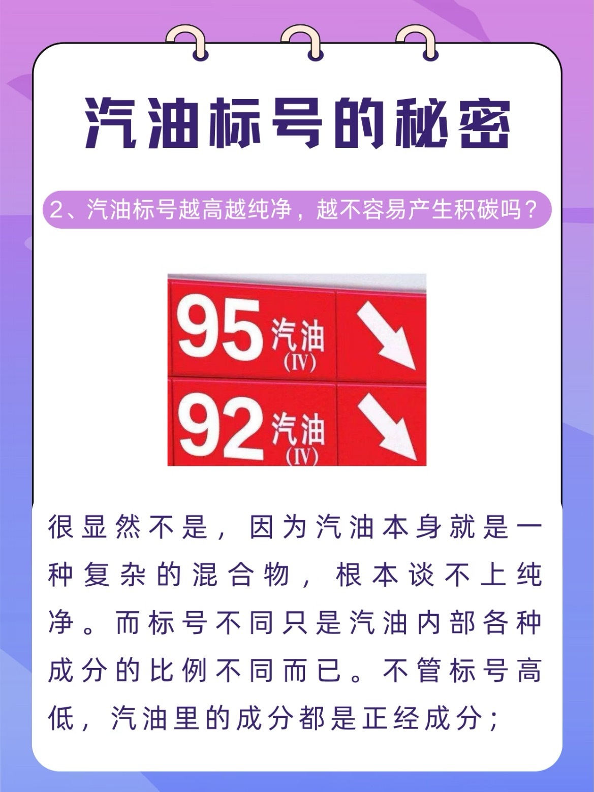 92、95、98号汽油到底有啥区别?⛽️ 加油时是不是总在纠结?不纠结不纠结,92/95/98的秘密全在下面了👇🏻🔍 1、高标号=动力更好?不一定!主要看发动机是否针对高标号优化。如果发动机是按92号设计的,加95号也不会提升动力;如果是高压缩比/涡轮增压车型,高标号汽油才能发挥真正实力。🔍 2、高标号=更纯净、少积碳?错!汽油本身就是混合物,不存在“纯净”一说。标号只代表抗爆震能力(辛烷值),和清洁度、积碳生成无关。92和95的清洁成分是一样的。🔍 3、乙醇汽油是啥?优缺点?在普通汽油里加10%燃料乙醇就是乙醇汽油。✅ 优点:排放更低,积碳生成更慢❌ 缺点:动力稍弱,油耗略高(能量密度低)🔍 4、可以自己换标号吗?看油箱盖或说明书!如果写着“限用92或以上”,那加92、95都行;如果明确要求“必须95及以上”,就别冒险加92,否则可能爆震伤发动机。大v聊车汽车