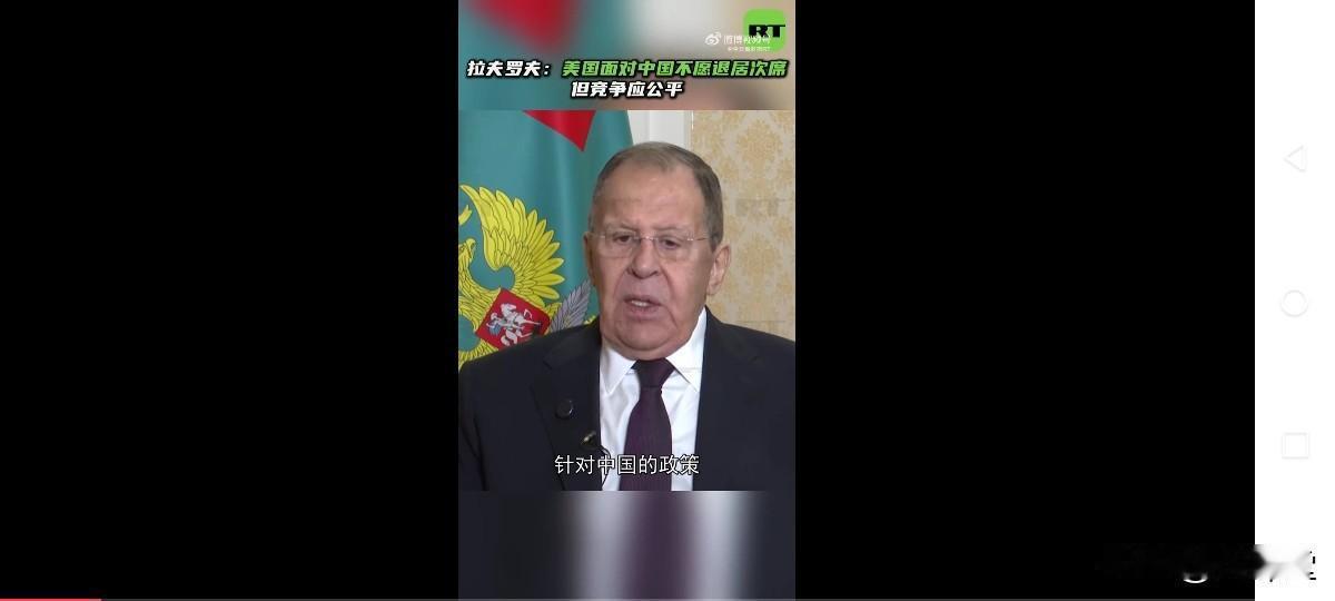 拉夫罗夫:美国面对中国不愿退居次席,但竞争应公平。俄罗斯外交部长拉夫罗夫表示,美国在制定遏制中国的政策时,并不愿意向这个在经济和政治实力上不断增强的国家让步,但国际竞争应当是公平的。 12月15日,拉夫罗夫在接受伊朗国家广播电视公司采访时指出:“很明显,美国希望构建一套针对中国的政策——一个不断增强实力、每年都显示出越来越高的经济发展、财政实力和政治影响力的国家。美国不愿意退居次要地位。 正如你们所知道的,我们并不反对竞争,但竞争必须是公平的。”拉夫罗夫还强调,通过征收100%甚至500%的关税来打压竞争对手,违背了全球化原则,而这一原则正是美国在二战后曾呼吁俄罗斯接受的,“当美国由于某个国家或某个人的政治立场直接宣布制裁时,这甚至已经不是不平等的问题,而是对人权的不尊重,是一种强权霸凌”。