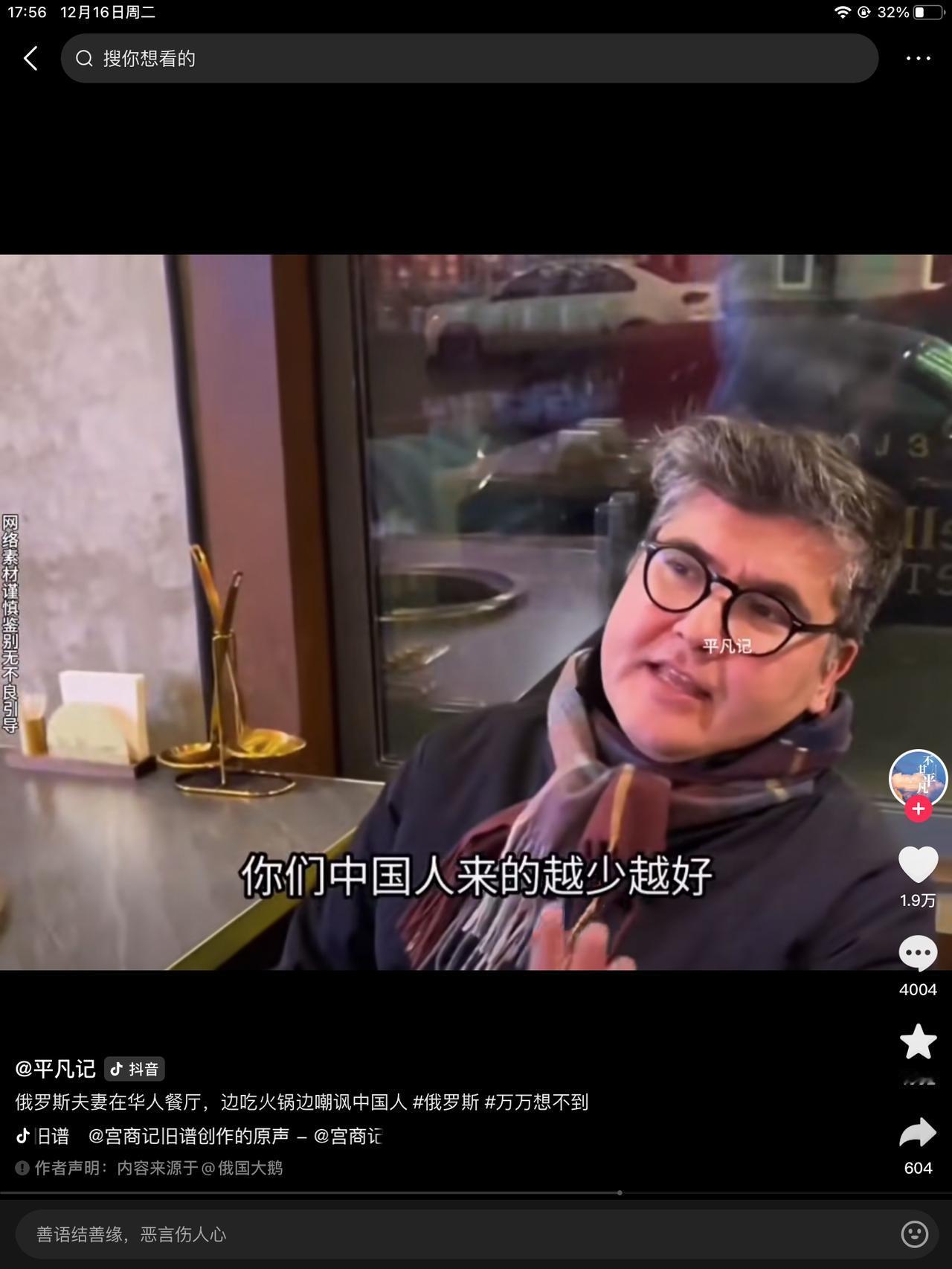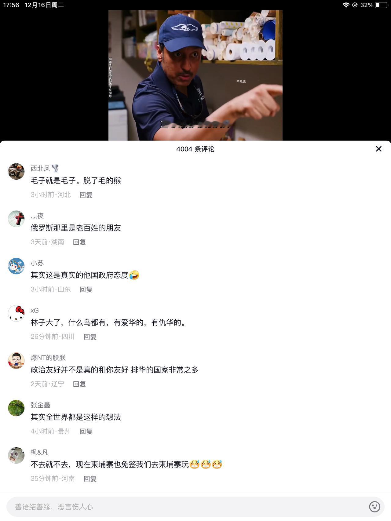 一位中国人博主在大鹅吃火锅,一对大鹅夫妻嘲讽国人家里都是老鼠,说你们来的人越少越好。 她俩倒是挺实在的。有话直接说,像极了本地人排外的那种感觉。有本地人看不下去了,帮中国人报了警。倒也没等来处理此事。后来夫妇两人走出门,在窗户上还比了个中间手指头。 其实吧,能理解,但是挺让人生气的。有能力的都想走出去看看,携程答应柬埔寨多给他们拉人过去。咋说呢,还是在家里呆着比较好。安全自在。