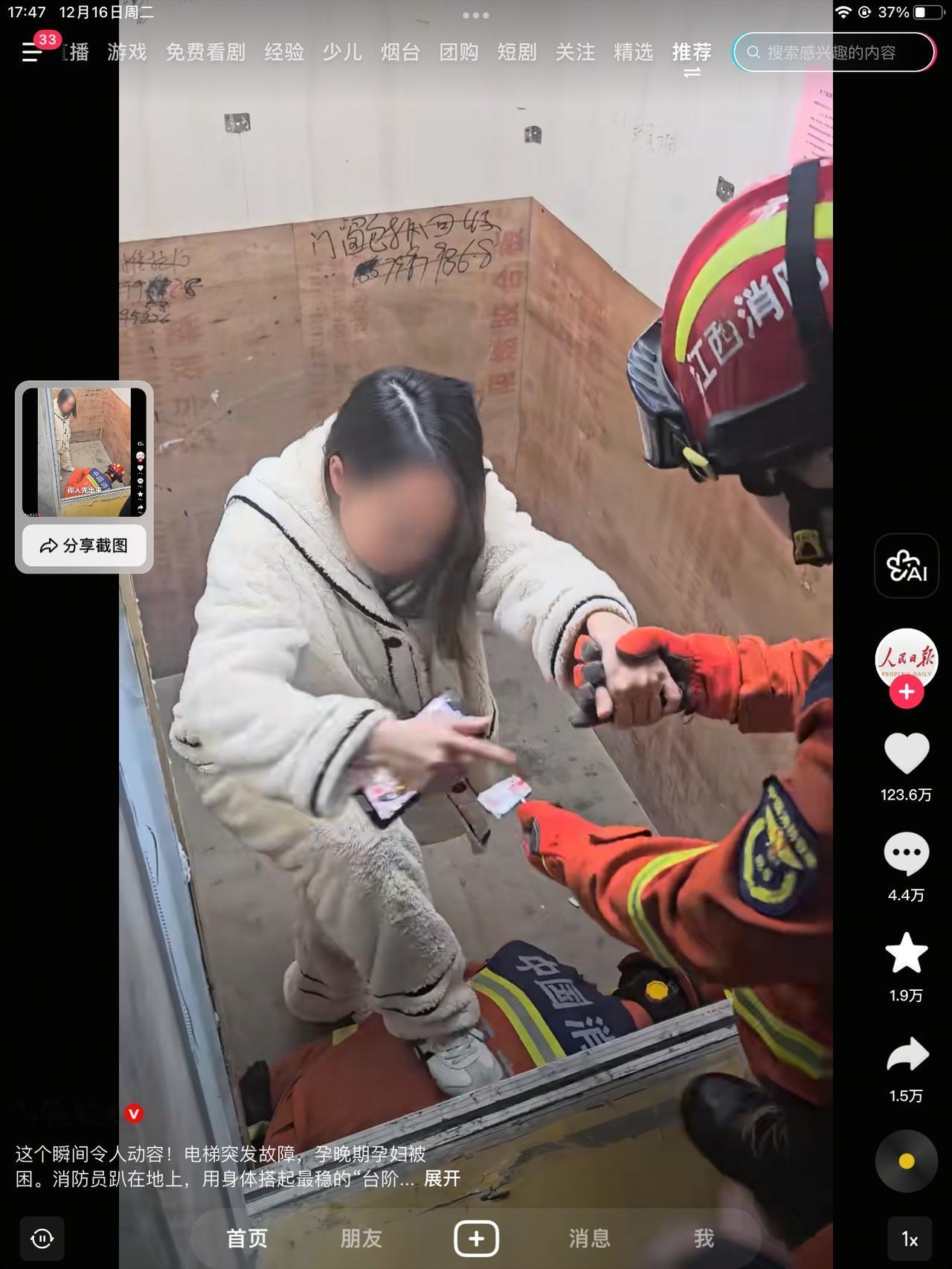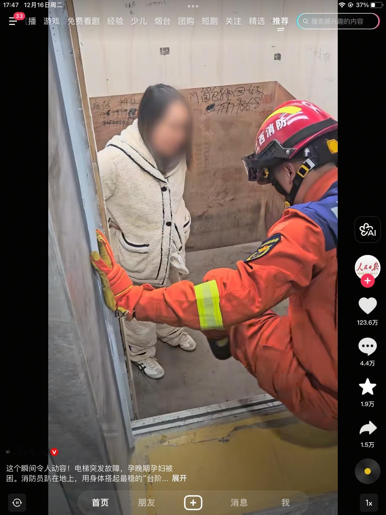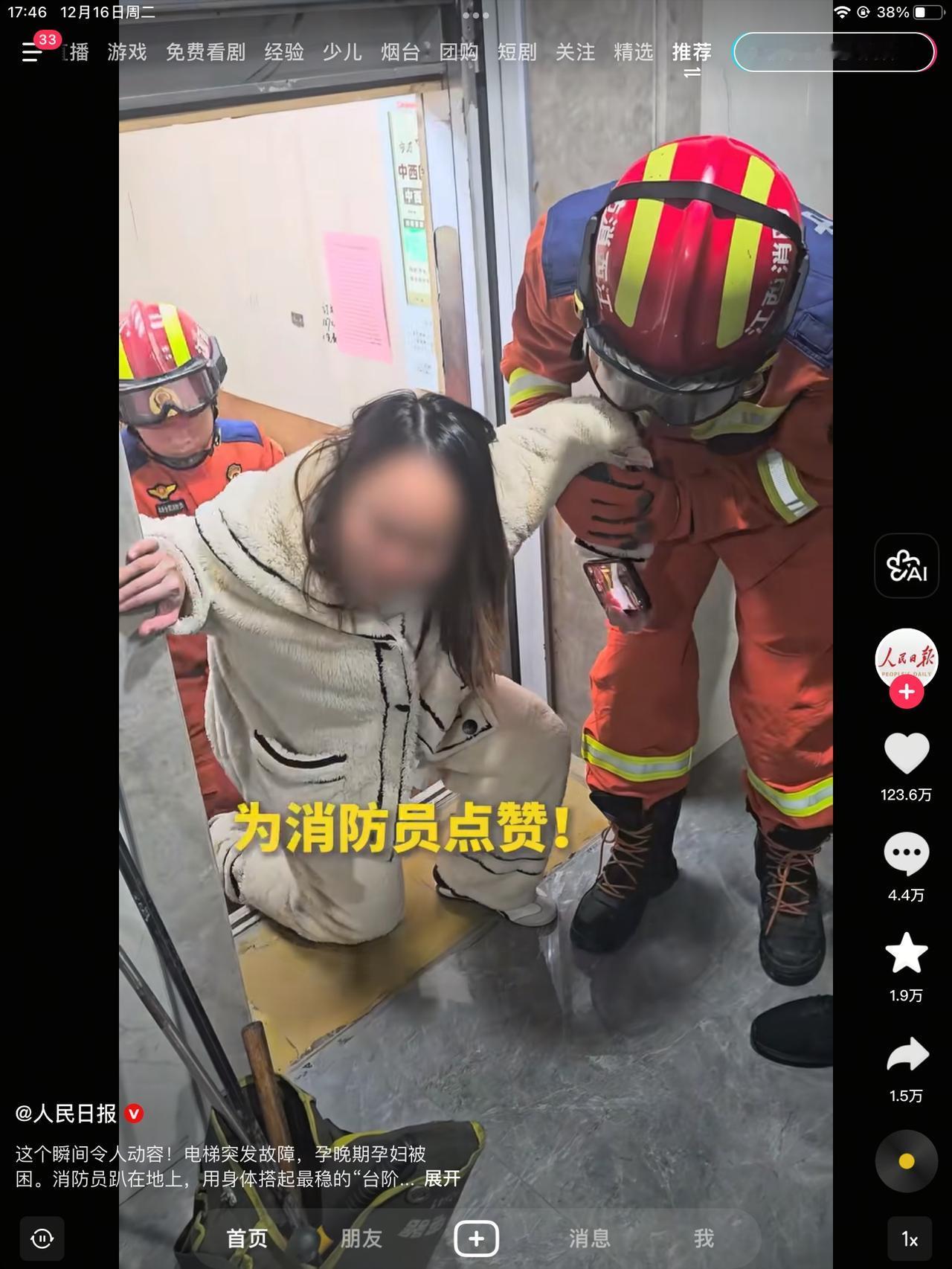 每次对这个世界死心的时候,就给我推这个!可怎么行哦! 这个消防员跳下去这一刻我也哭了。 电梯突然故障,孕妇被困在电梯里头,出不来,当消防员得知她是孕妇的那一刻,丝毫没有犹豫,跳下去立马做成人梯子,让她踩着自己上来。孕妇也很不好意思,不要不要连说了好几遍。最后还是踩着消防员上来了。 普通人,过这一天,真不容易啊!