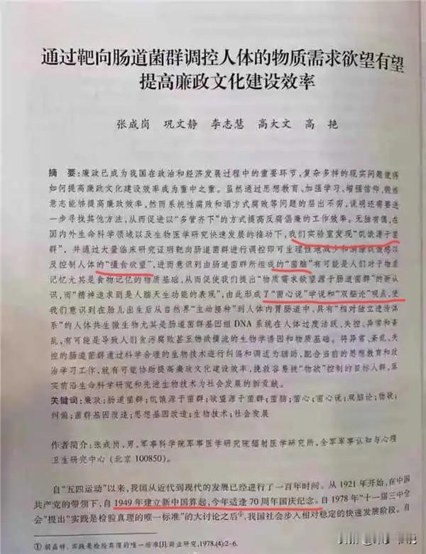 新发现,调整肠道菌群提升廉政建设 刚看到这篇文章的时候我以为是1970年之前的文章。毕竟那时候全国都艰苦,有很多人就为了填饱肚子开始贪污,但是文章中写到“今年适逢70周年国庆”也就是说这篇文章写于2019年。并非艰苦的年代。 其实这篇文章通读下来并没有什么特别的地方,就是这个标题有点问题而已。