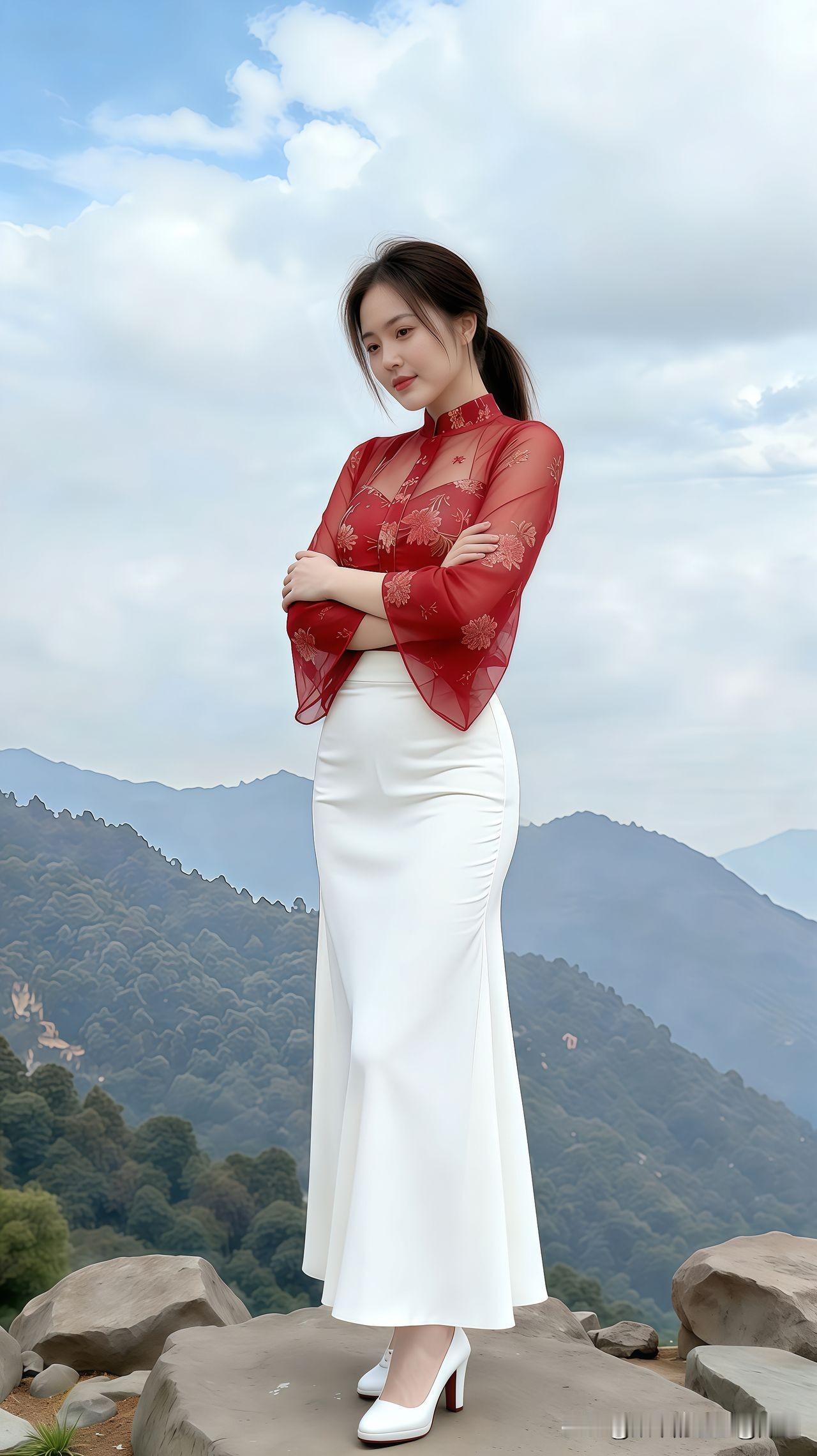 这姑娘穿着红衫白裙,在山顶翩翩起舞,着实让人羡慕[比心][比心] 户外白裙照