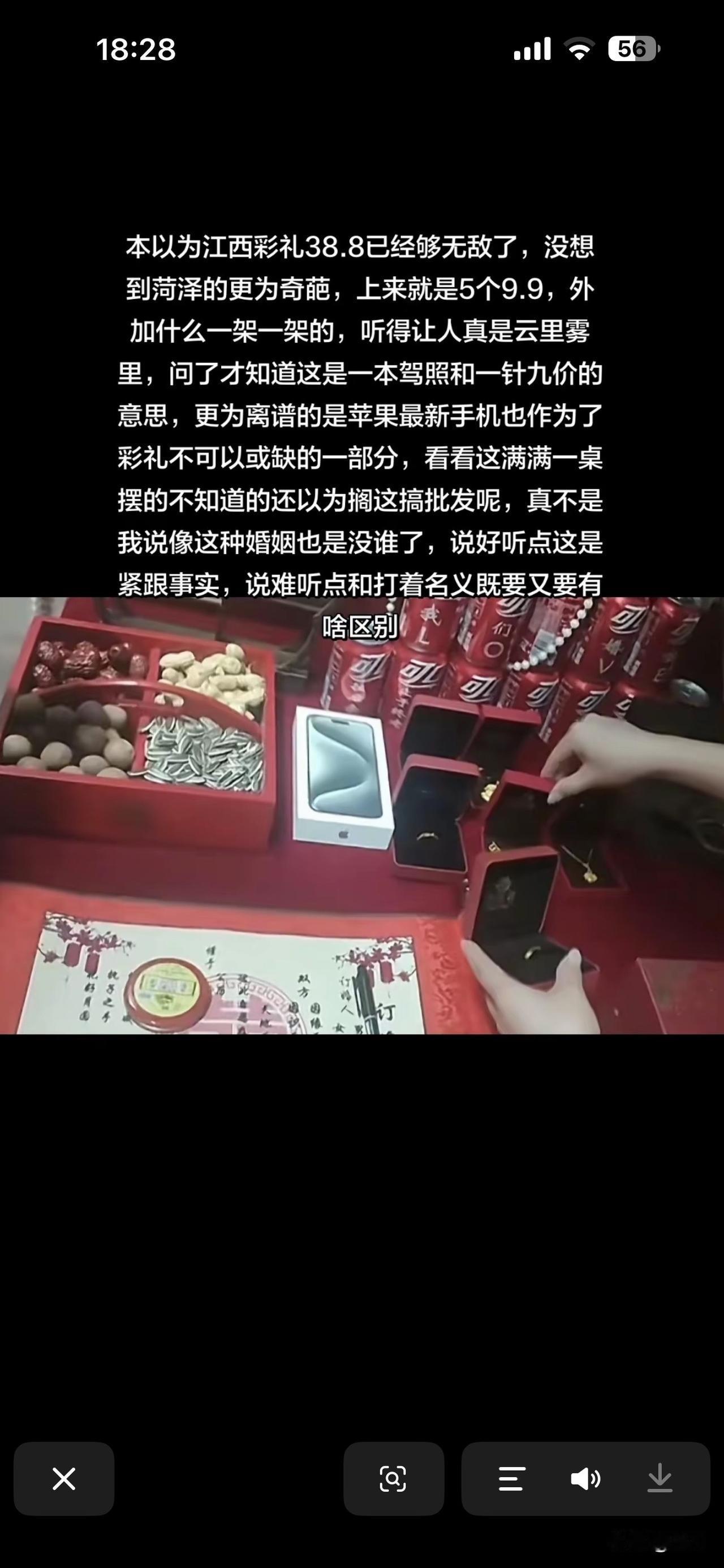 山东菏泽地区女性彩礼新花样 苹果手机和波司登羽绒服一辈子想不到,居然在25年会因为菏泽地区彩礼火起来。以前小编认为38.8万彩礼已经无敌,没想到菏泽在这个上面还要出一驾照,一九价,一款最新的苹果手机📱居然也在列。针对此事,大家怎么看?