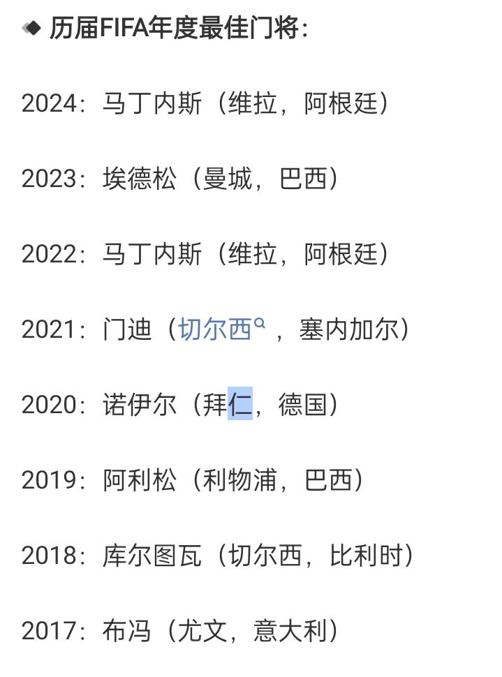 FIFA官方:多纳鲁马荣膺2025年度最佳门将 12月16日 FIFA官方公布,曼城门将多纳鲁马当选2025年度最佳门将。他击败了阿利松、库尔图瓦、马丁内斯等多位候选者