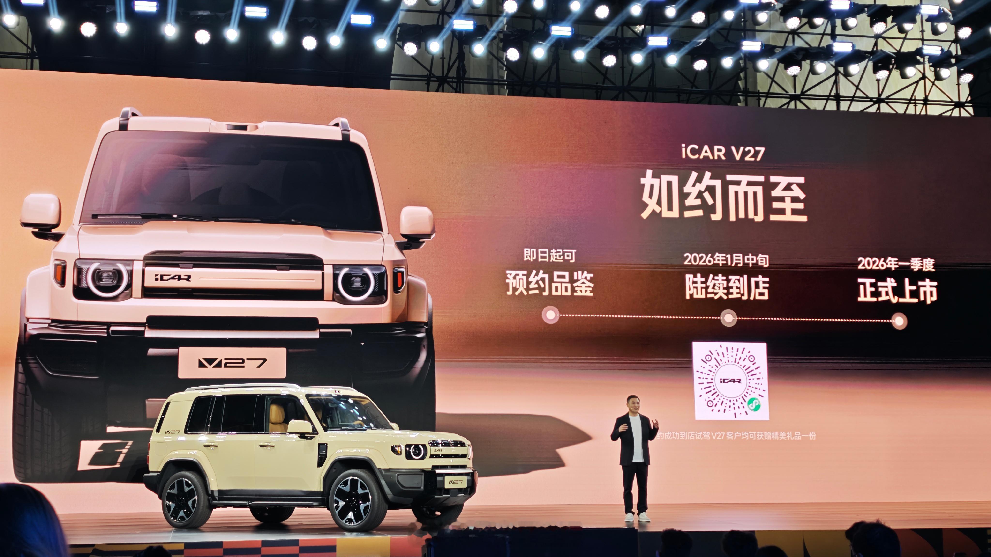 iCAR年轻人的车iCARV27iCAR V27一月份将陆续到店,即日起可预约品鉴。预计2026年一季度上市。