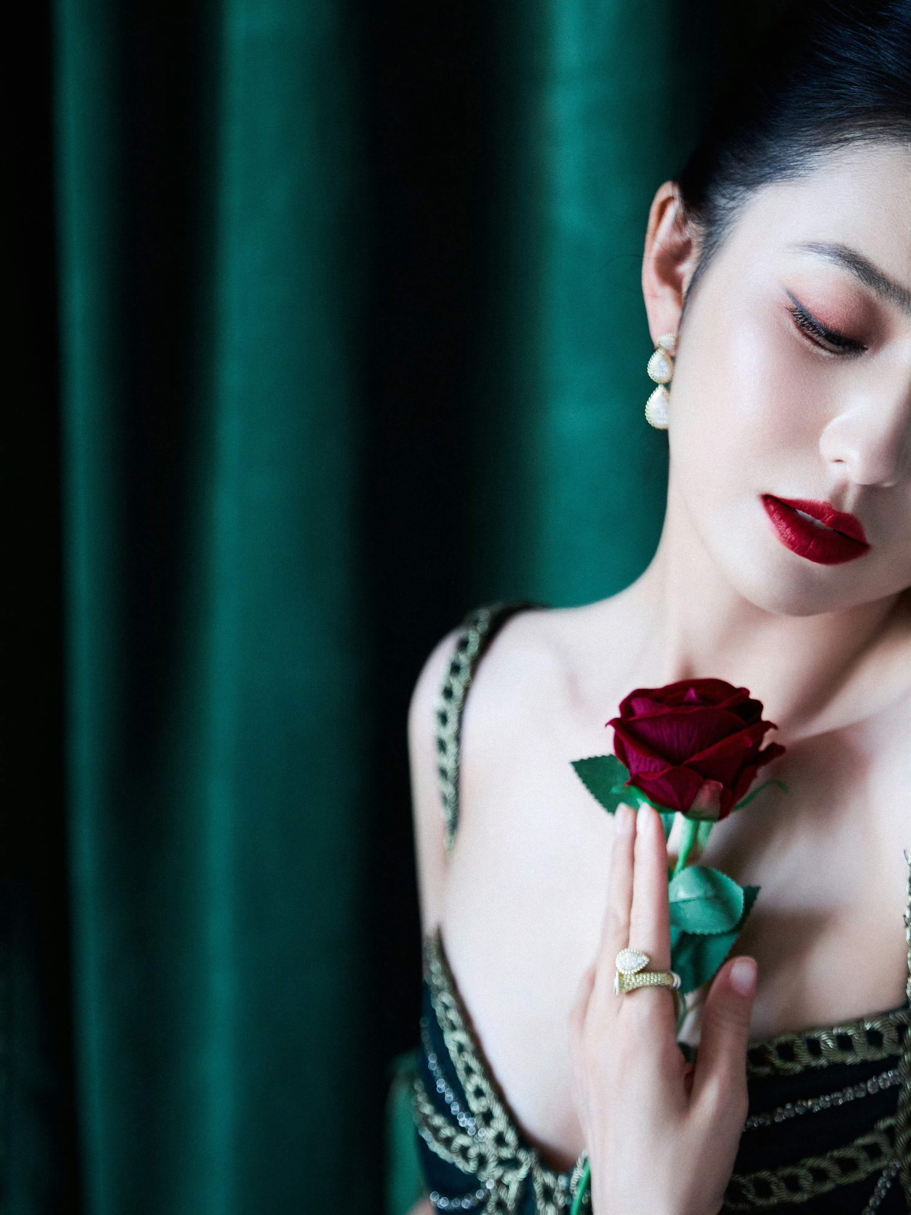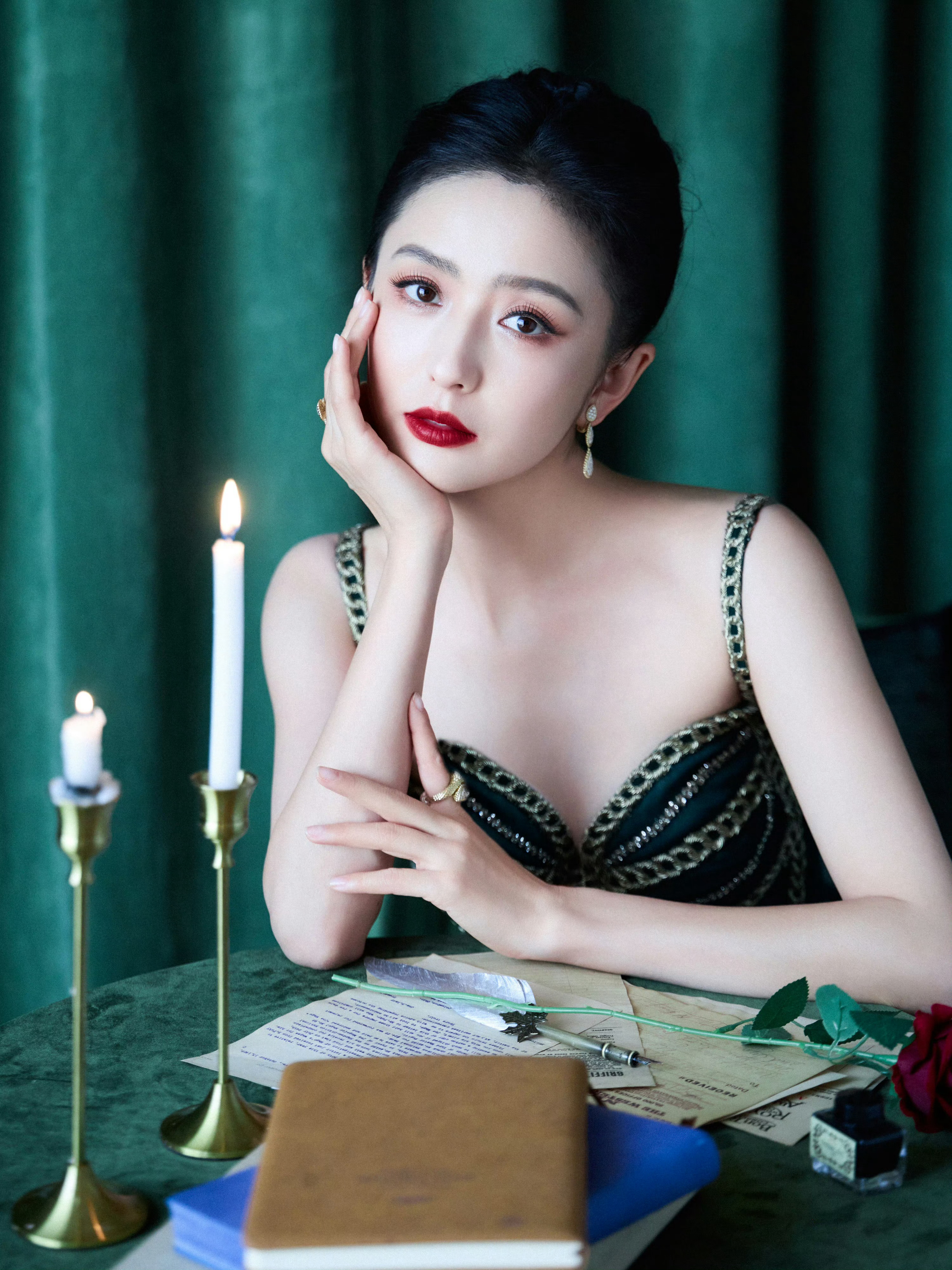 佟丽娅 被这抹墨绿拿捏住了!丝绒的质感也太绝了吧~💚