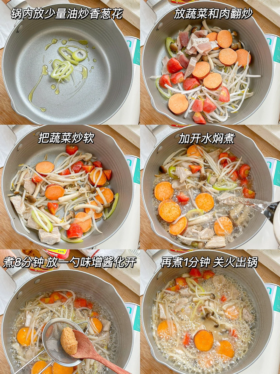 “不知道吃什么的时候,就来做一碗暖乎乎的味增蔬菜汤吧!10分钟就能吃上饭!”