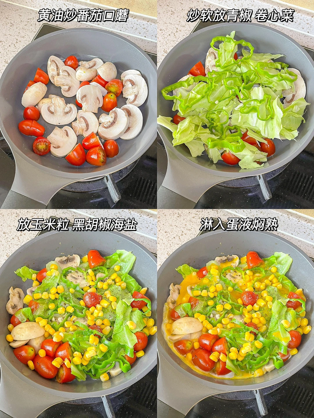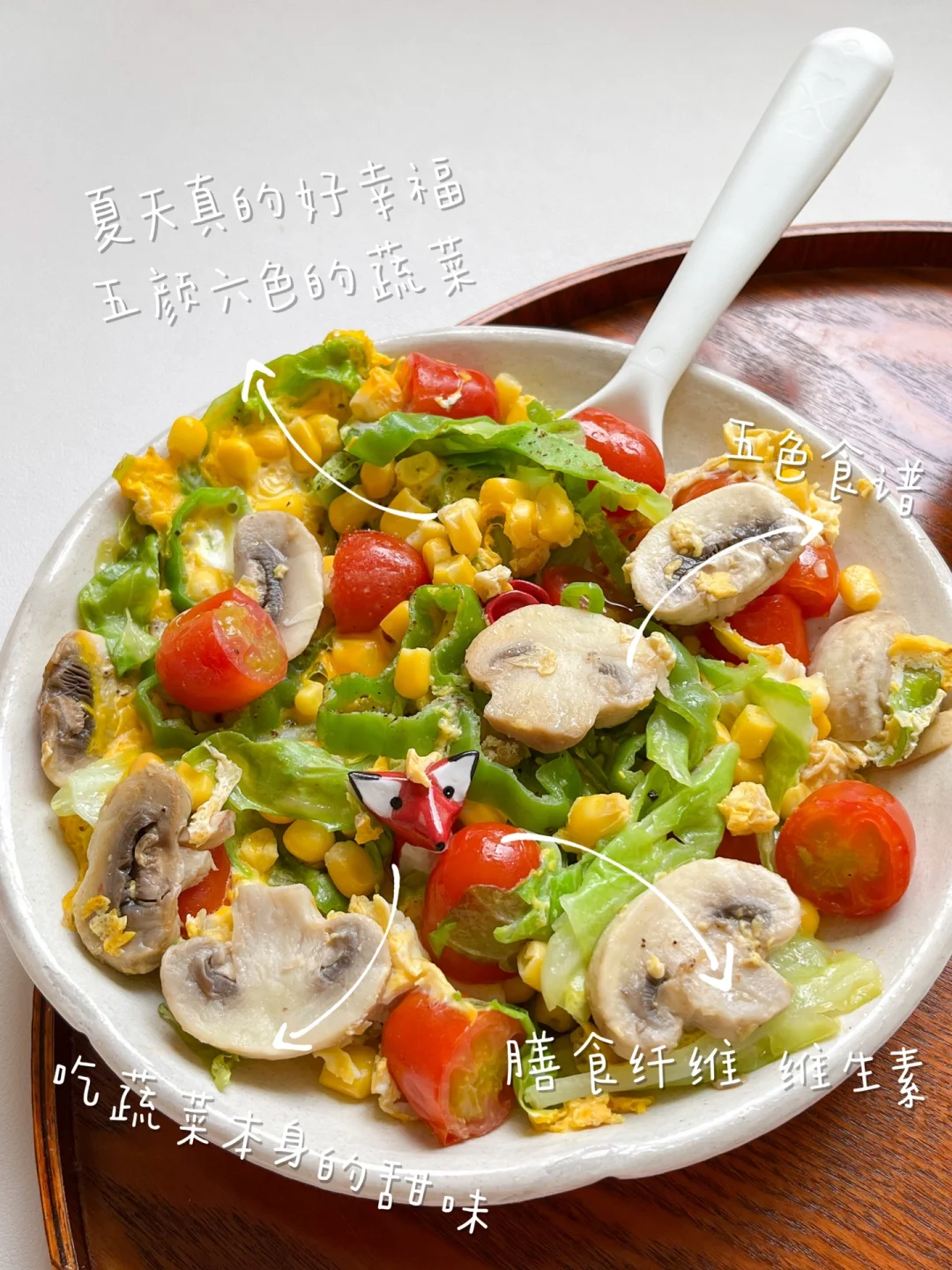 属于开放性食材的一道菜,番茄和蘑菇是不可少的 ,用黄油炒会更香!菠菜、卷心菜可以替换着放,还可以放一些虾仁,主打一个随心!夏天吃颜色鲜艳的食物,心情也会跟着变好~