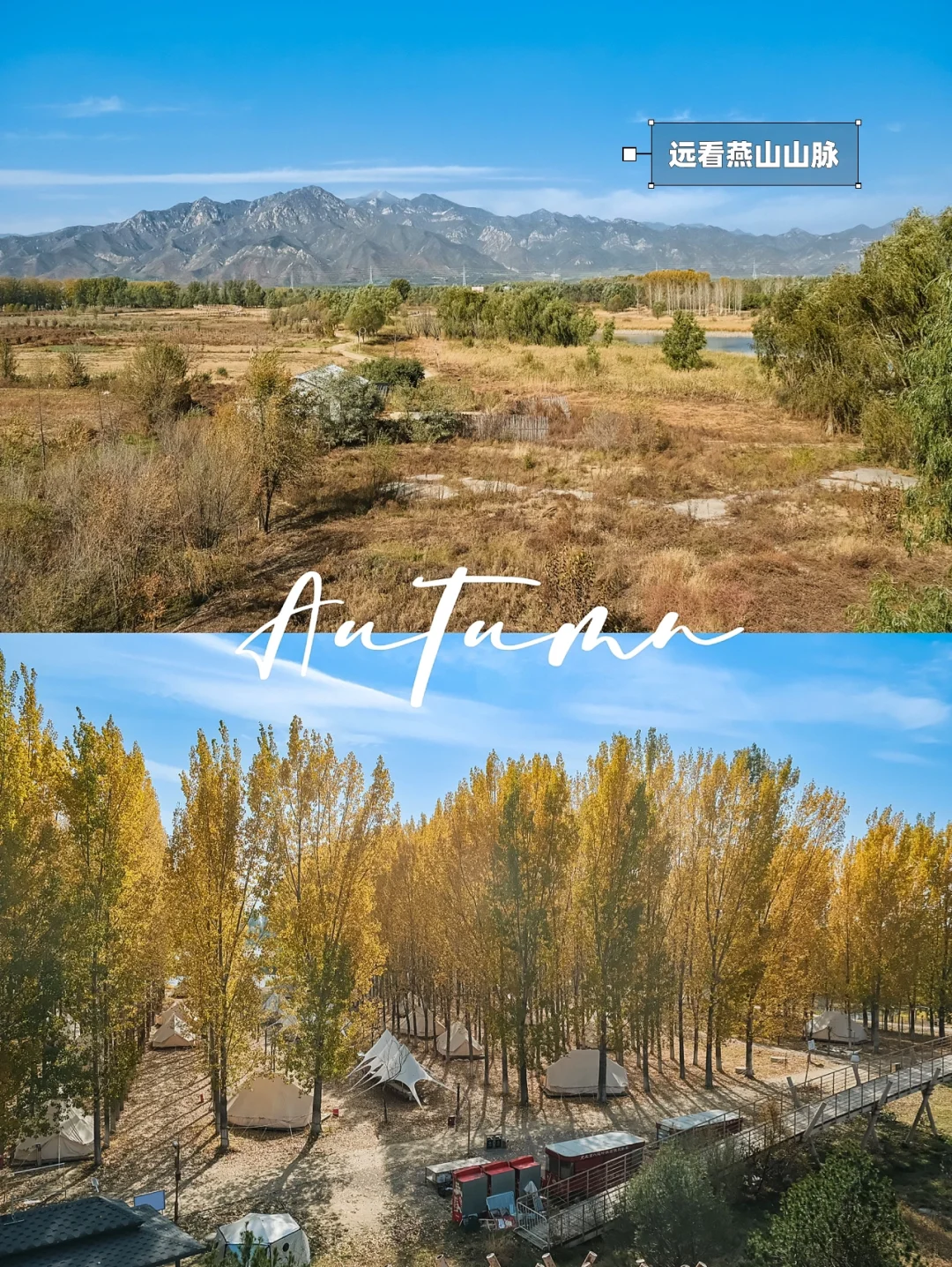 左滑5G入秋🍁北京这么美的秋色必须好好欣赏才是🍂今天给大家分享一个超级小众无人问津的露营地点🤫在百亩湿地和燕山山脉间扎帐⛰️这才是我想要的秋季露营‼️