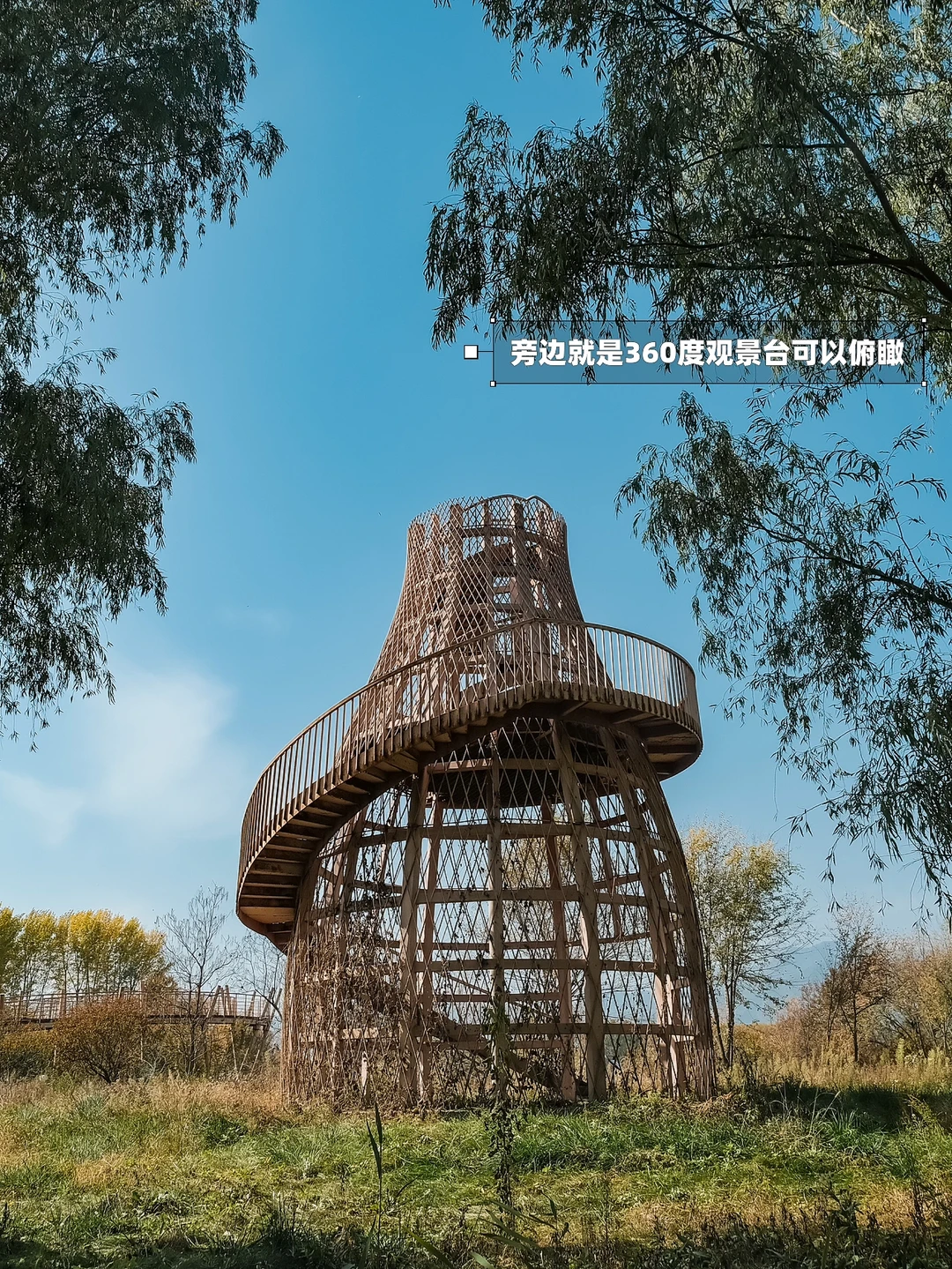 📍导航到“世界葡萄博览园”,从主路一直往南行,看到【图三】那片黄色的林子左转,走到河岸边的卫生间再左转,穿过一片芦苇荡就到了,旁边就能看到那个很大的360度观景台。我自己画了个简要的地图,有需要的随时问我✔️