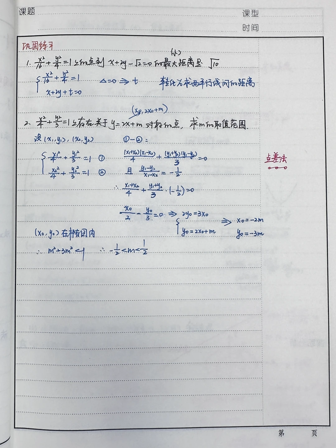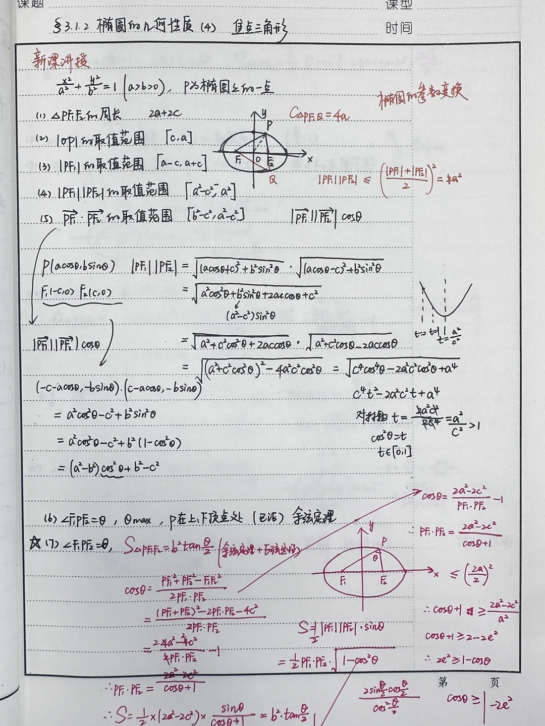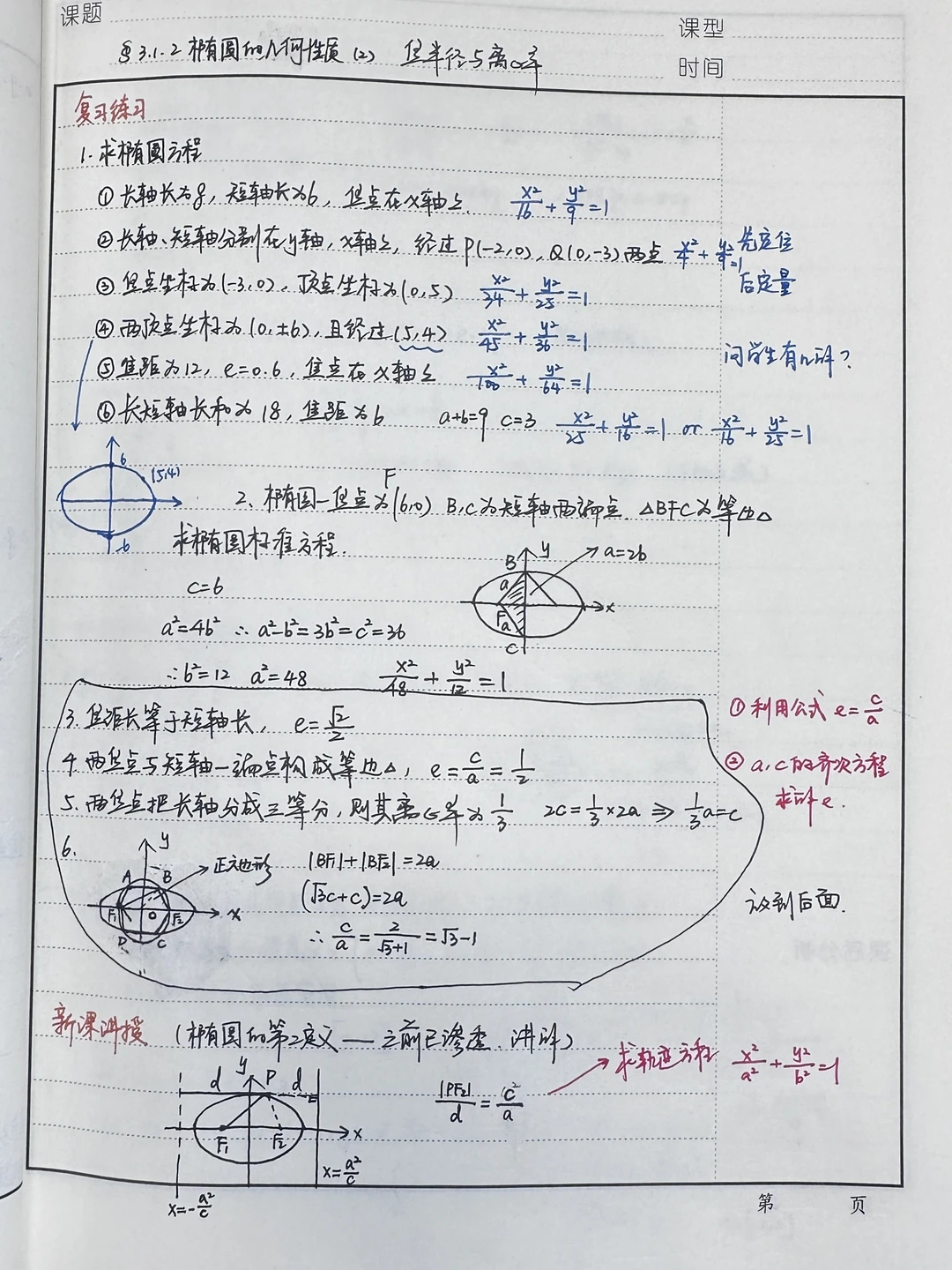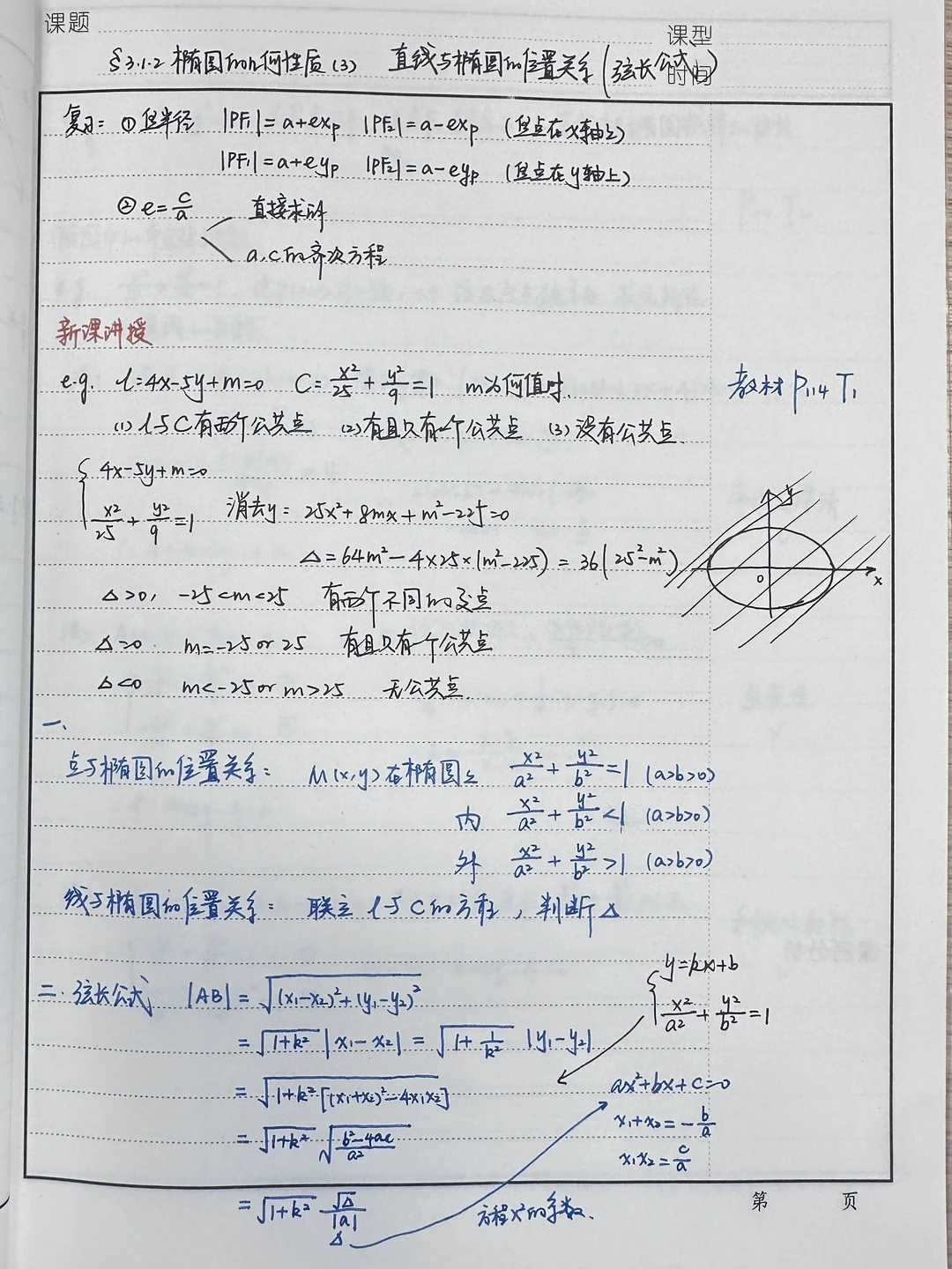 讲3到4课时,很全面的内容,焦半径、焦点弦、离心率、弦长公式、焦点三角形、直线与椭圆位置关系,几个重点~