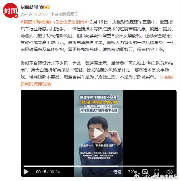 魏建军说让每一个零件多工作10年 这话不是空谈,是长城35年深耕的底气!拒绝“流量迭代”的短期套路,每年砸百亿研发,建2000+项试验体系,从-40℃风洞到南极冰原,量产坦克300直接扛起科考保障重任。车主实测哈弗H6开11年跑58万公里无大修,发动机经14000小时极限测试仍性能在线,这就是“零件多工作10年”的硬证明。不玩花哨配置,专注耐用本质,长城用长期主义打磨品控,既支撑国家科考,又让普通车主开得省心,这才是中国车企的靠谱坚守!魏建军称为用户打造防忽悠指南