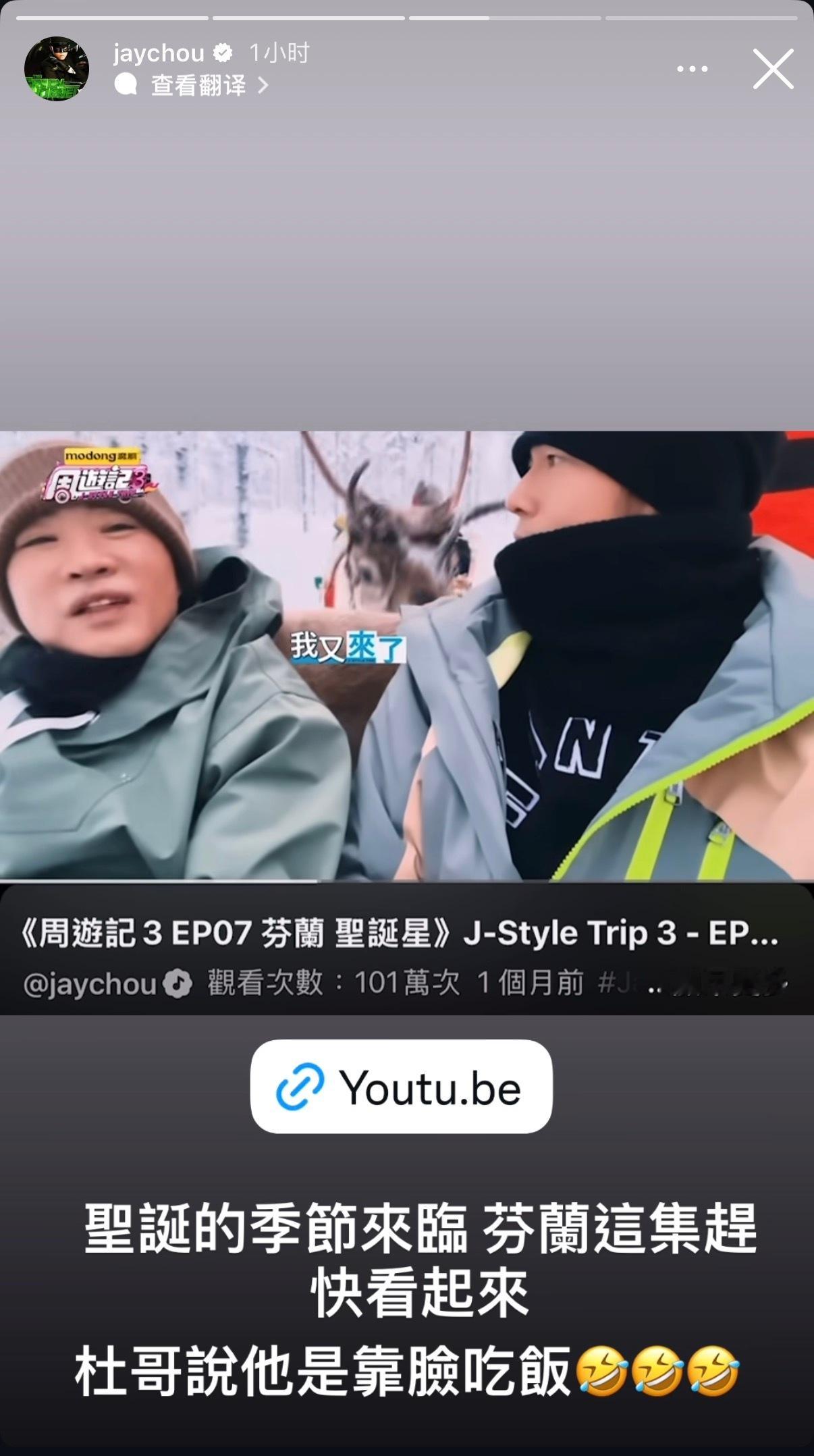 杰伦:圣诞不工作 跨年不工作 如果想念哥的话 记得收看「周游记」🤣🤣🤣