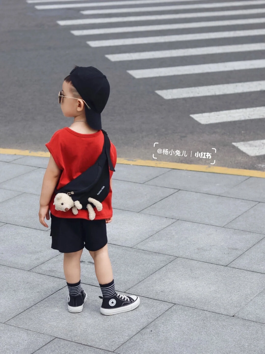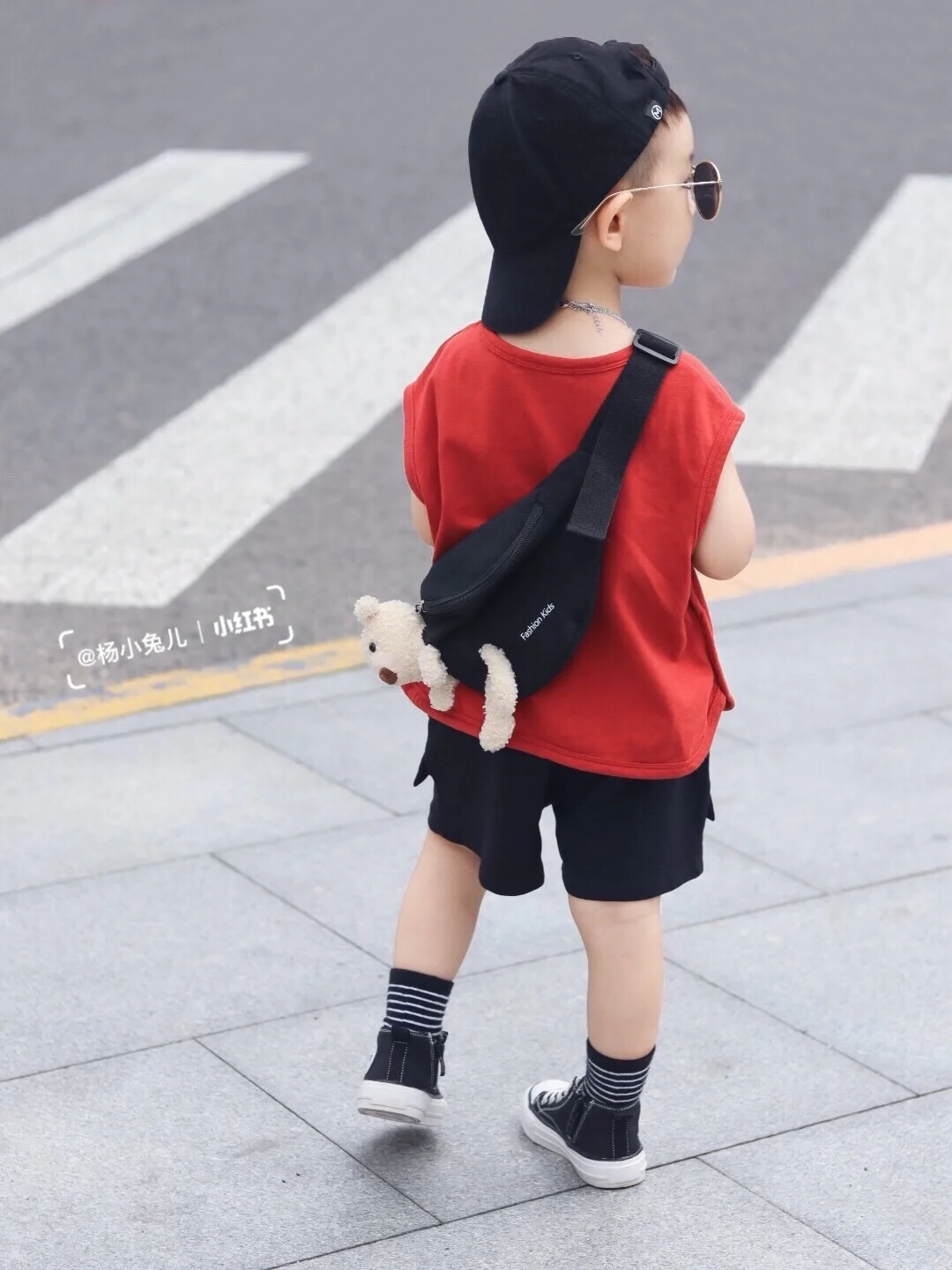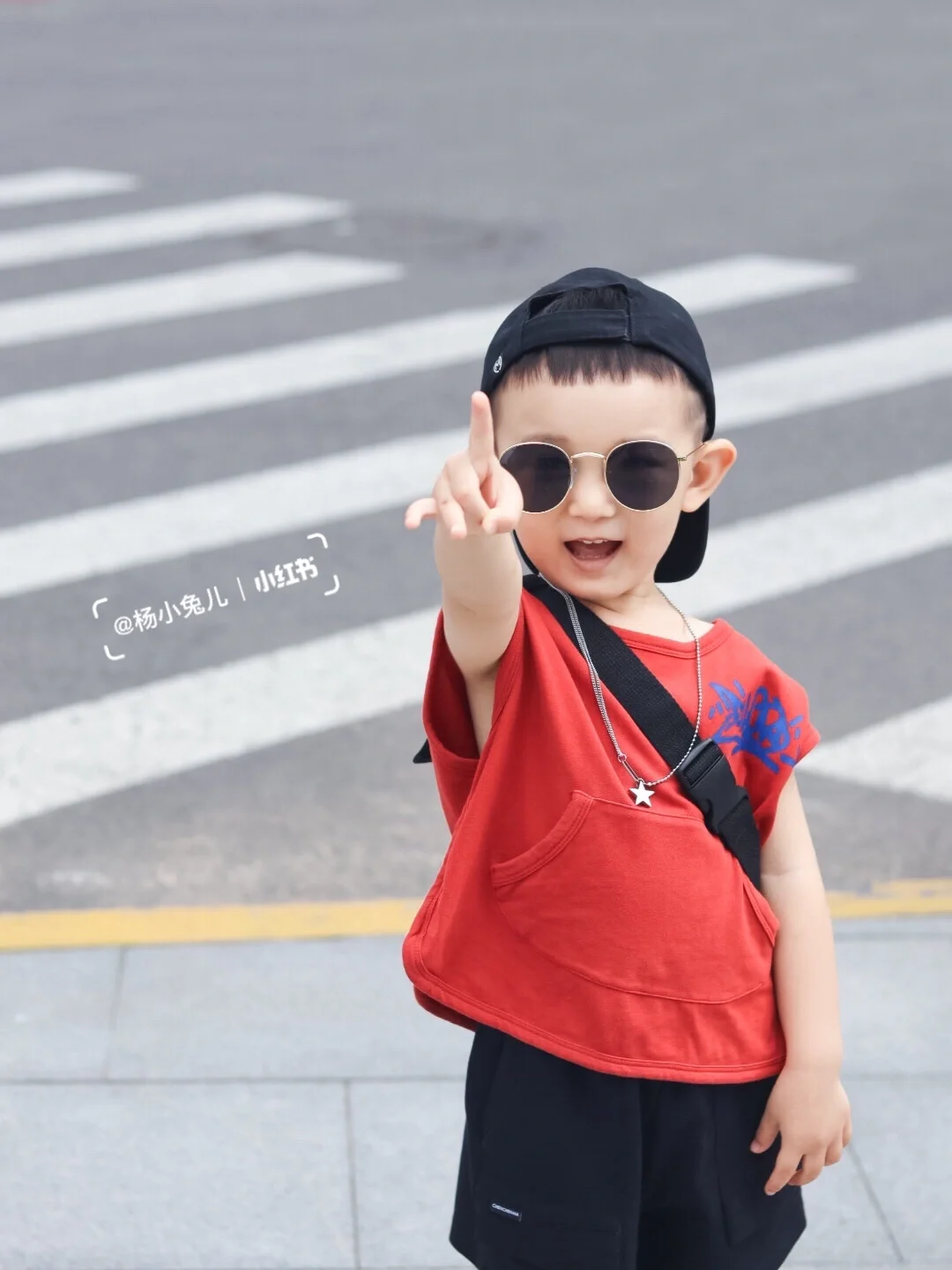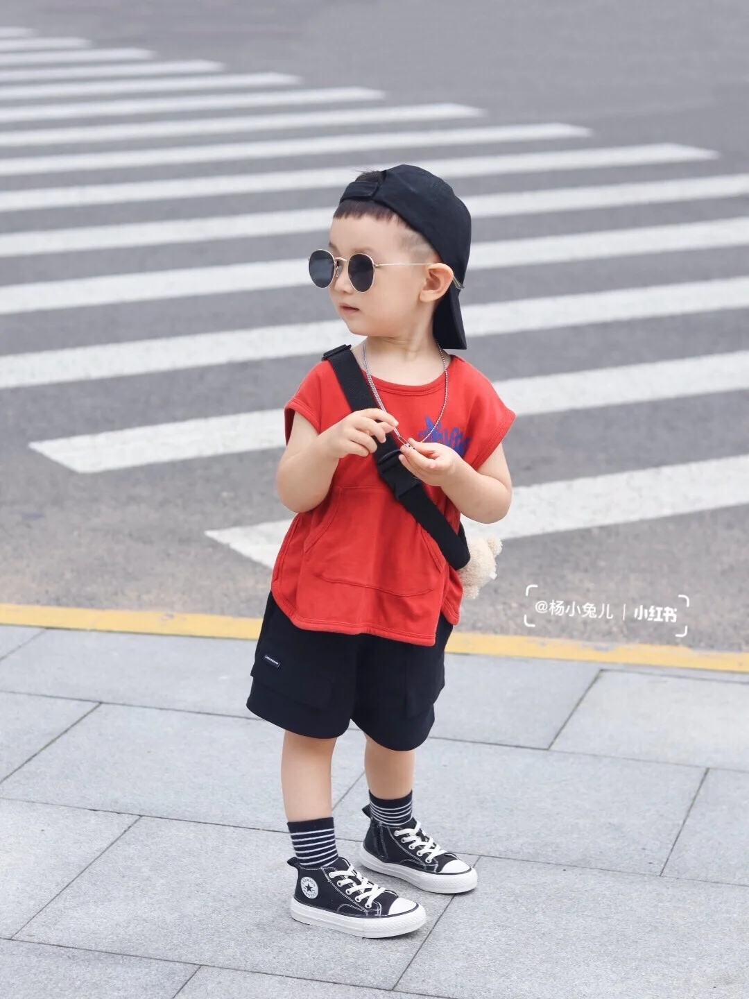 红黑配❤️🖤永远是经典~ 暗红色的无袖背心港味儿十足~ 墨镜🕶项链搭配起来~ 这个酷盖也太哇塞了吧❗️ —————— 男童穿搭|男宝穿搭|男娃穿搭|宝宝穿搭|不费力穿搭|夏日穿搭|萌娃日常|幼儿园穿搭|穿搭分享|每日穿搭|潮童穿搭