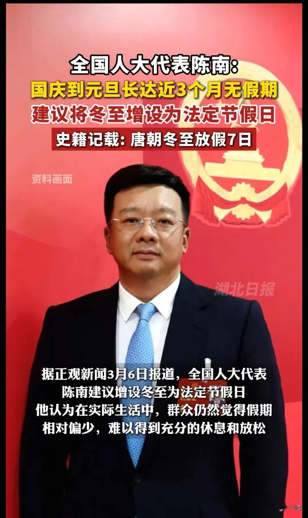 关于将冬至设立为法定节假日的建议 全国人大代表陈南建议:将冬至增设为法定节假日。个人非常赞同。冬至,作为二十四节气中最早被测定的节气,承载着中华民族数千年的文化积淀与生活智慧。从周秦时期的岁首之庆,到汉唐的法定假日,再到唐宋的祭天祭祖盛典,冬至“大如年”的传统早已深入人心。在当代社会,重新将冬至确立为法定节假日,既是对传统文化的传承延续,也是回应民生需求、促进社会和谐的重要举措,具有充分的历史依据与现实价值。 一、历史依据:冬至作为法定假日的文化传承脉络 冬至成为节日的历史可追溯至数千年前,其作为法定假日的传统由来已久且绵延不绝。殷周时期,先民已将冬至视为岁终节点,周秦时代更以冬十一月为正月,以冬至为岁首过新年,确立了其年度时间坐标的核心地位。进入汉代,冬至正式被称为“冬节”,成为全国性重要节日,官府不仅举行隆重的“贺冬”仪式,更明确规定“冬至前后,君子安身静体,百官绝事,不听政”,文武百官放假休息,军队待命、边塞闭关、商旅停业,举国以“安身静体”的方式共度佳节,其隆重程度与放假规格已堪比春节 。 唐宋时期,冬至的法定假日地位进一步巩固。《唐六典》明确记载,冬至与元旦同享七日假期,唐人会在假期中走亲访友、宴饮祝寿,就连僧道之人也会相互道贺,节日氛围遍及社会各阶层 。宋代时,冬至更是成为祭天祭祖的重要盛典,皇帝举行南郊祭天仪式,百姓则穿新衣、拜尊长、祭先祖,《东京梦华录》中“御道两侧看棚鳞次栉比”的围观盛景,生动展现了当时冬至的节日热度 。这种将冬至纳入法定假日的传统,贯穿古代社会核心发展阶段,形成了深厚的文化惯性与民众认同。 二、现实依据:设立法定假日的多重社会价值 (一)传承文化根脉,增强民族认同 冬至承载着丰富的文化内涵,既是天文历法的智慧结晶,也是民俗礼仪的重要载体。从“冬至一阳生”的阴阳流转哲学,到土圭测影的古老观测技术;从北方吃饺子纪念张仲景的人文传说,到南方吃汤圆寓意团圆的美好期许;从“九九消寒图”的雅致等待,到“贺冬拜冬”的亲情互动,冬至的每一项习俗都蕴含着中华民族对自然、家庭、生命的独特认知 。将其设立为法定假日,能为民众提供充足时间参与传统活动,让老人得以传承节日故事,年轻人得以感受文化魅力,从而激活传统文化生命力,强化民族文化认同感。 (二)顺应民生需求,促进家庭团圆 冬至自古以来就是家庭团聚的重要时刻,“人间小团圆”的习俗延续至今。现代社会节奏加快,异地就业、求学人群众多,家庭成员聚少离多,而冬至作为“数九寒天”的起点,正是家人围炉相聚、慰藉乡愁的最佳契机 。设立法定假日,能让漂泊在外的游子有机会返乡,与亲人共享饺子、汤圆等传统美食,在欢声笑语中传递亲情、凝聚家庭力量。这既回应了民众对团圆的情感诉求,也有助于缓解社会疏离感,构建和谐家庭关系。 (三)契合养生理念,保障民众健康 中医认为,冬至是“万物闭藏”的关键节点,人体阳气相对虚弱,需注重“安身静体”“防寒保暖” 。古代将冬至列为假日,本质上是顺应自然节律的养生智慧,让民众在严寒时节得以休养身心、积蓄能量。现代社会竞争激烈,职场人群普遍面临作息不规律、压力过大等问题,设立冬至假日,能为民众提供调整作息的机会,通过早睡晚起、适度进补、放松心情等方式养护身体,契合当代人对健康生活的追求,也有利于提升国民健康素养。 (四)丰富假日体系,拉动消费需求 我国现行法定假日中,传统节日类假日承载着重要的文化功能,但分布相对集中。将冬至纳入法定假日,可优化假日结构,形成“中秋—冬至—春节”的冬季传统节日链条,为民众提供更多休闲选择。同时,冬至的饮食习俗、民俗活动等能有效带动餐饮、旅游、文创等相关产业发展,北方的羊肉汤、南方的汤圆礼盒、各地的民俗体验项目等,都将形成消费热点,既促进经济循环,也能培育新的文化消费增长点。 三、实施建议 1. 放假天数:建议设立1天法定假日,若恰逢周末则调休补假,既保障节日氛围,又避免对生产生活秩序造成过多影响,契合我国现行假日设置惯例。 2. 宣传引导:通过媒体、学校、社区等渠道,普及冬至的历史文化、民俗礼仪与养生知识,鼓励开展祭先祖、写消寒图、家庭团圆宴等传统活动,让节日更具文化内涵。 3. 产业联动:引导各地结合地域特色,开发冬至民俗旅游、传统美食体验等项目,支持文创企业打造节日主题产品,实现文化传承与经济发展双赢。 冬至作为承载着天文智慧、文化记忆与民生情感的传统节日,将其确立为法定节假日,是对千年文明的致敬,更是对当代民众需求的回应。这一举措既能让传统文化在新时代焕发生机,又能促进家庭和睦、保障民众健康、拉动社会消费,具有深远的历史意义与现实价值。期待通过法定假日的形式,让冬至“大如年”的传统重回生活,让更多人在这个特殊的节气里,感受文化的温度、家庭的温暖与自然的节律。