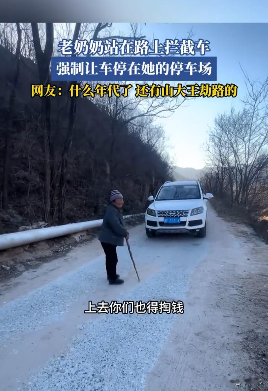老奶奶站在路中间拦住车辆,车上的人以为她要碰瓷,整得紧张不已。 老太太用拐杖指指右边坡下一片空地,示意车主把车子停到下面去。 原来她是要为自家停车场招揽一笔生意,车主们多虑了,老太太并不是要碰瓷。 但白车还想再往前走,不想停在这里:“哎呀,大娘你让让吧,我们再往前走点,这里离景区太远了,我们想少走几步路。” 那老奶奶坚持不让他们过去:“你们上去也得掏钱,上去也便宜不了,停在这儿还很宽敞。” 去外面游玩,碰上这种情况,真的很扫兴。 这就是恶意推销,强买强卖,出来时兴致勃勃的,一下子弄得兴趣全无。 如果是正规景区,可以拨打投诉电话。 如果是尚未开发的野外景区,就注定你火不了。 穷山恶水出刁民。 原住民人心不善,把游客当做韭菜来割,只会把自己的名声败坏。 但像这样僵持着也不是办法,如果她执意不让,车主应该怎么办呢?
