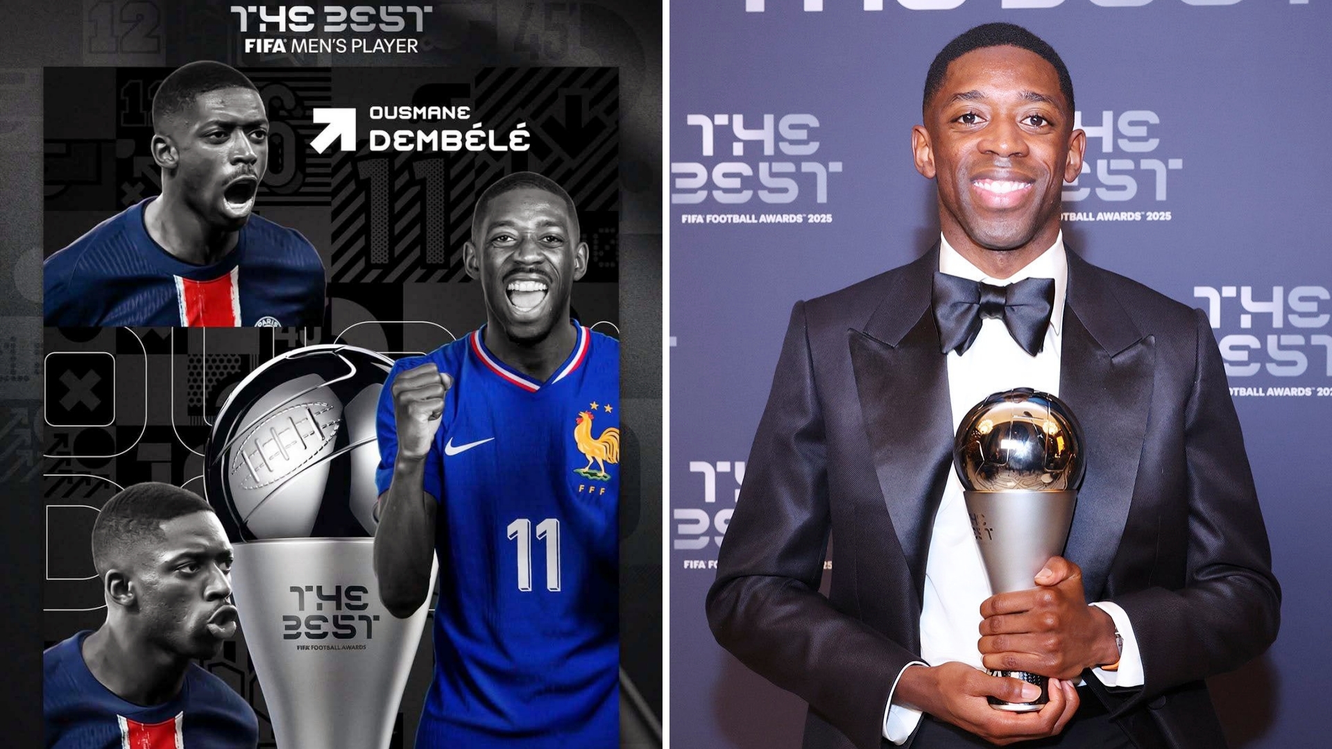 90后第一人!28岁的巴黎圣日耳曼前锋登贝莱当选2025年度FIFA世界足球先生。 在24/25赛季,他共代表巴黎圣日耳曼出场53次,打进35球16助。 帮助巴黎夺得法甲,法国杯,法超杯和欧冠4项冠军,此外他还在9月获颁2025年金球奖。