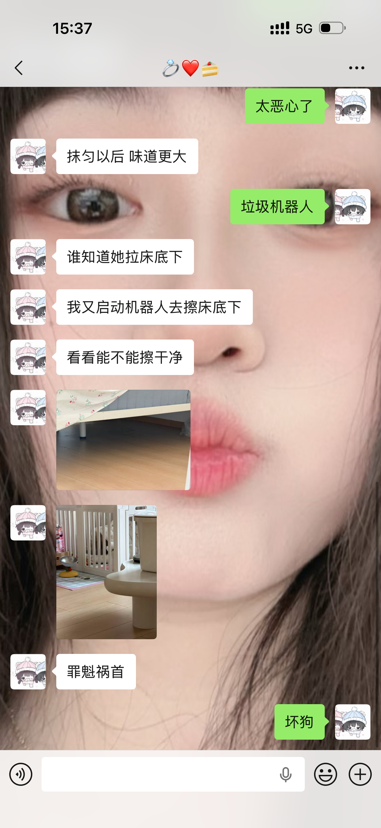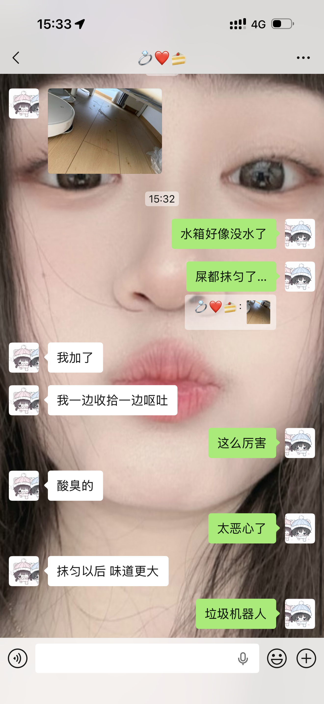 扫地机器人和小狗会有什么联动呢??小狗偷偷在床底下拉屎,我们没发现。扫地机器人把屎在床底下抹匀,然后带到整个屋子。屋里散发着屎发酵的臭味儿。机器人脏的不行,屋里臭的不行,小狗开心的不行。梦幻联动了