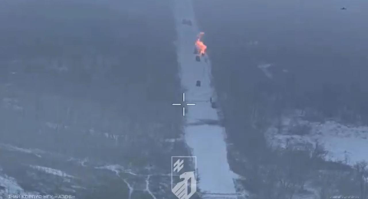 俄军利用大雾和低能见度,在亚速营责任区发动了袭击。(该帖子由一个位于赫尔松的亲乌克兰账号发布。) 乌克兰亚速旅的无人机拍摄画面,显示乌克兰在顿涅茨克附近雾天条件下,利用无人机、火炮和预先布设的地雷,摧毁了一支由16辆四轮摩托车组成的俄军步兵突击队,没有一名突击队员抵达乌克兰防线。 俄罗斯不断演变的低技术战术,即在能见度低的情况下,从装甲车辆转向全地形车以提高机动性。乌克兰在实时监控方面的优势,尤其是在俄罗斯多管齐下的攻势下,乌克兰军队的无人机-火炮一体化系统彻底消灭了这支突击队。