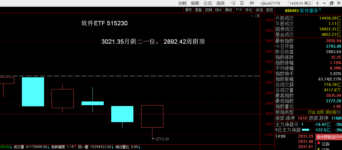 软件指数这里变成了飘龙波站稳了阴线的二一位和实顶,攻击型行业的异动