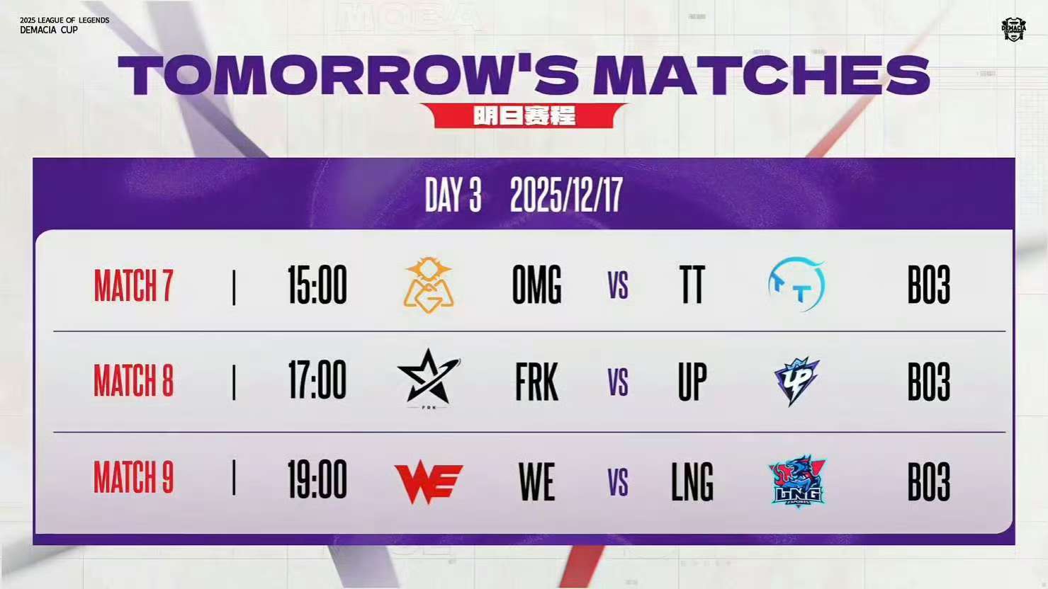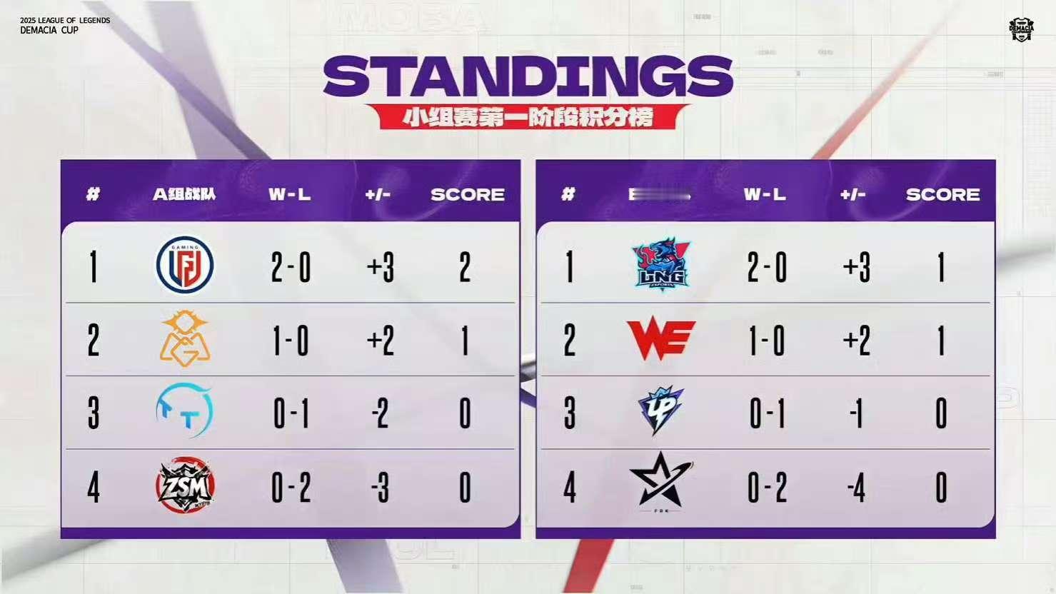 【2025德玛西亚杯第一阶段】第二日赛果,积分情况,今日赛程如下:2025lp