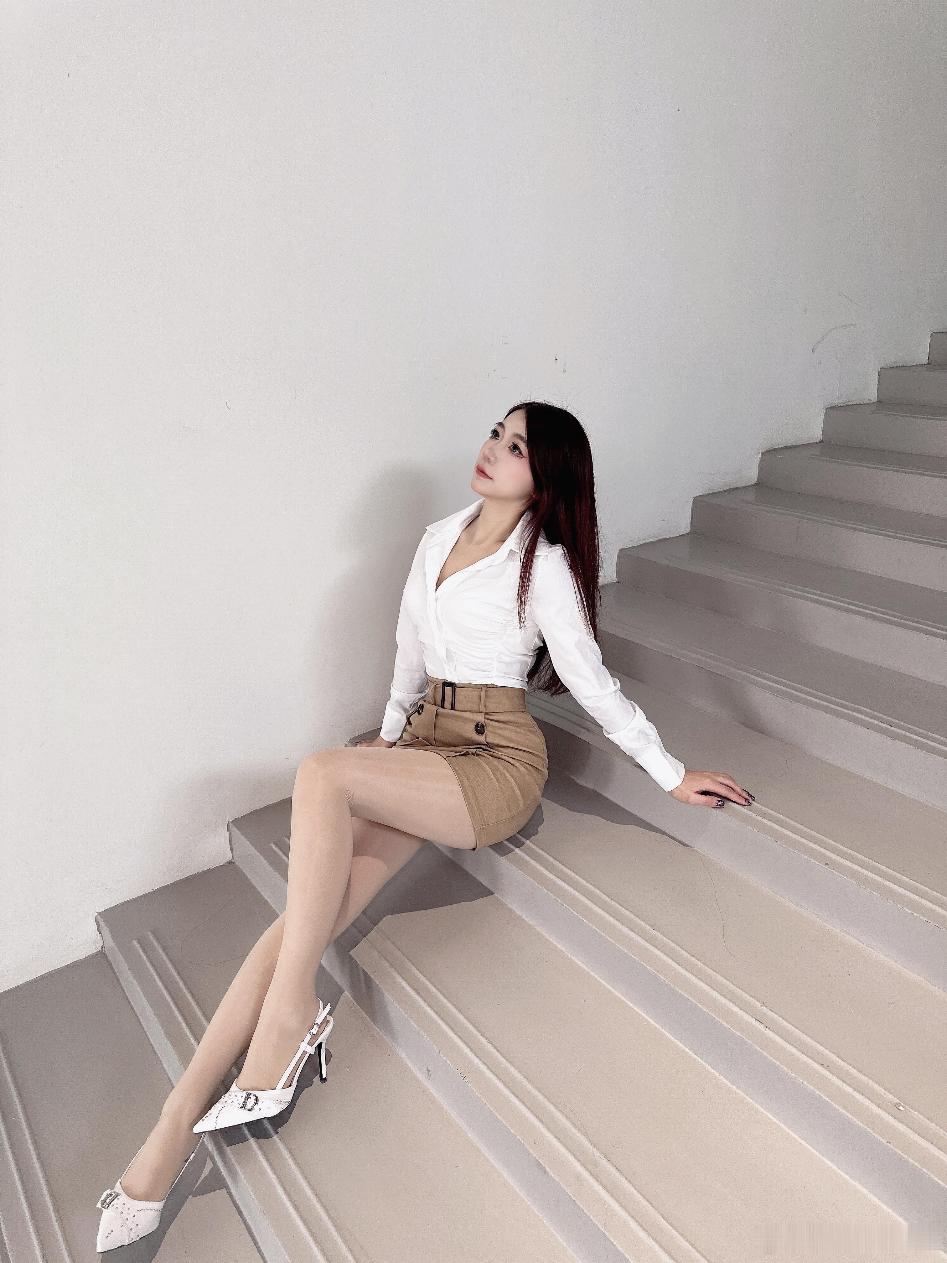 孙允珠身着白衬衫搭配黑色短裙的造型,堪称简约时尚的典范!白衬衫搭配黑领带,尽显利