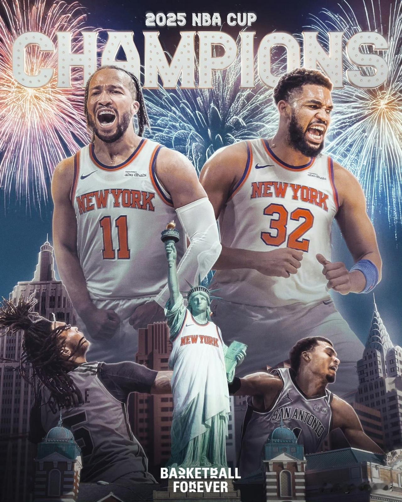 尼克斯战胜马刺,拿下NBA杯冠军!!! ——阿奴诺比,28分9篮板3助攻 ——布伦森,25分4篮板8助攻 ——唐斯,16分11篮板2抢断 ——全队上下7人得分上双 今年的东部,笑到最后的会是尼克斯吗?从目前的格局来看,我最看好他们代表东部杀进总决赛!!!